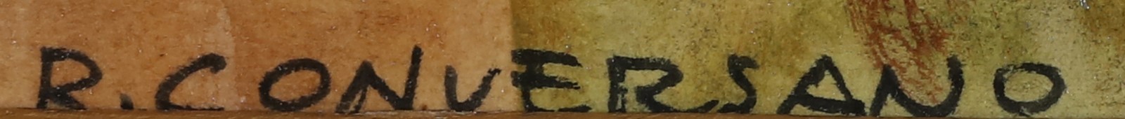 CONVERSANO ROMANO (1920 - 2010) Senza titolo. Tecnica mista su cartone. Cm 28,00 x 36,00. Firma in basso a sinistra. Cornice presente