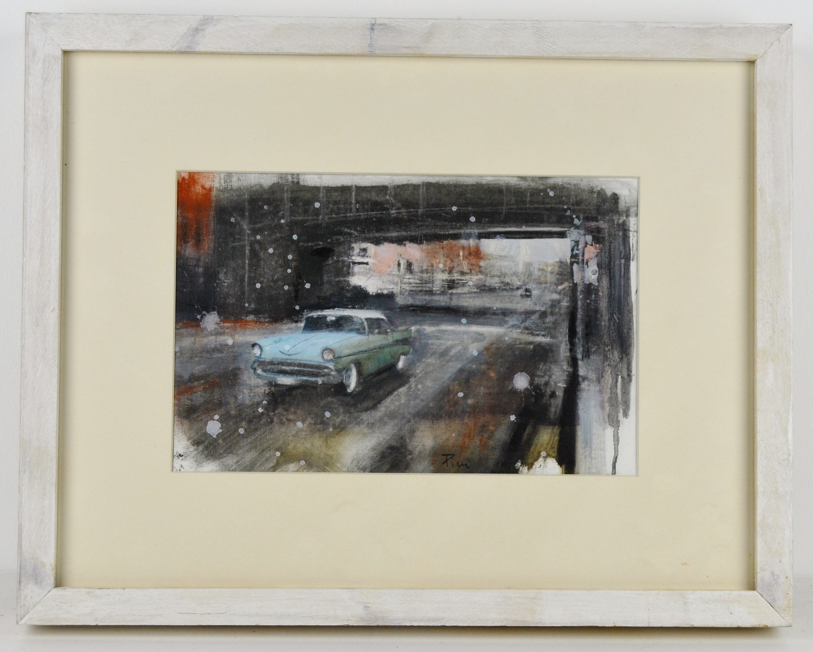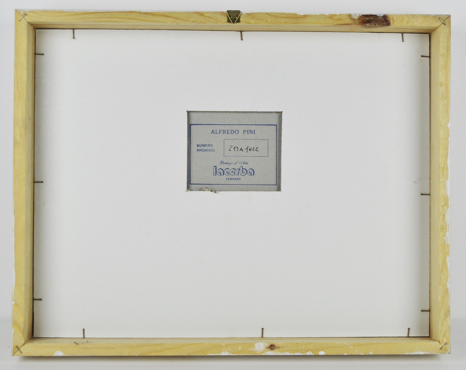 PINI ALFREDO (n. 1958) Untitled. Mixed media on paper. Cm 30,00 x 19,50. Signature lower centre. At the back Bottega d'Arte Lacerba, Ferrara stamps. Alfredo Pini archived.. Cornice presente