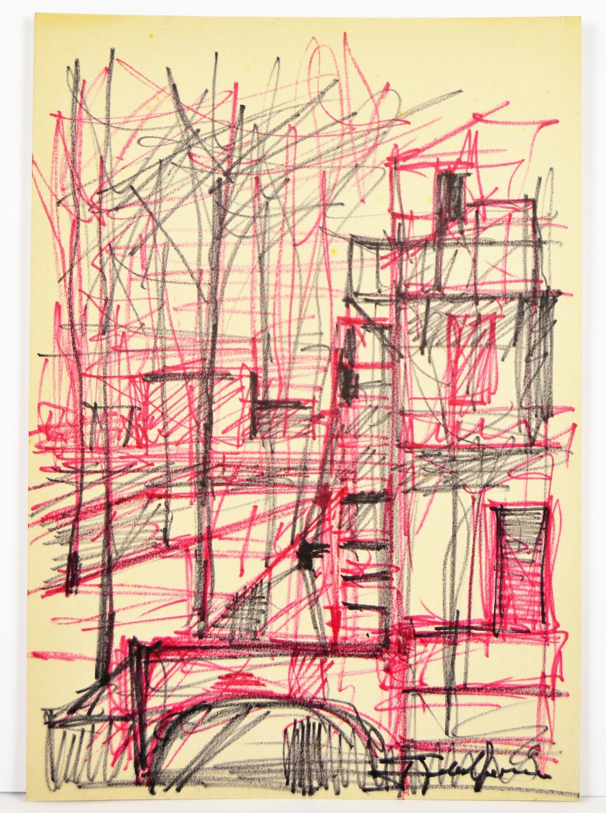 NON IDENTIFICATO AUTORE Senza titolo. Disegno su carta. Cm 29,50 x 42,50. Firma in basso a destra.