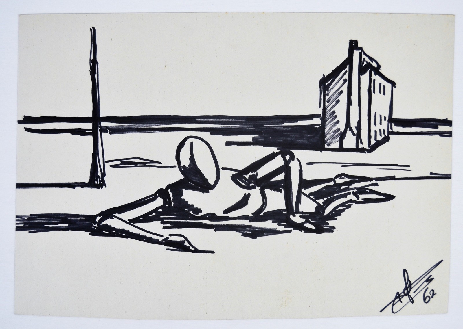 NON IDENTIFICATO AUTORE Senza titolo. 1962. Disegno su carta. Cm 31,00 x 21,50. Firma e anno in basso a destra.