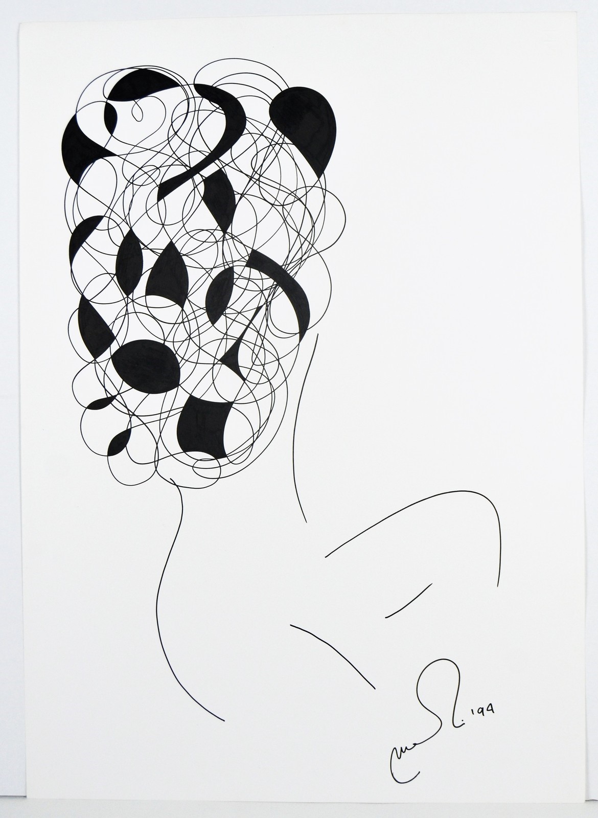 NON IDENTIFICATO AUTORE Senza titolo. 1999. Disegno a china su cartoncino. Cm 50,00 x 70,00. Firma e anno in basso a destra.