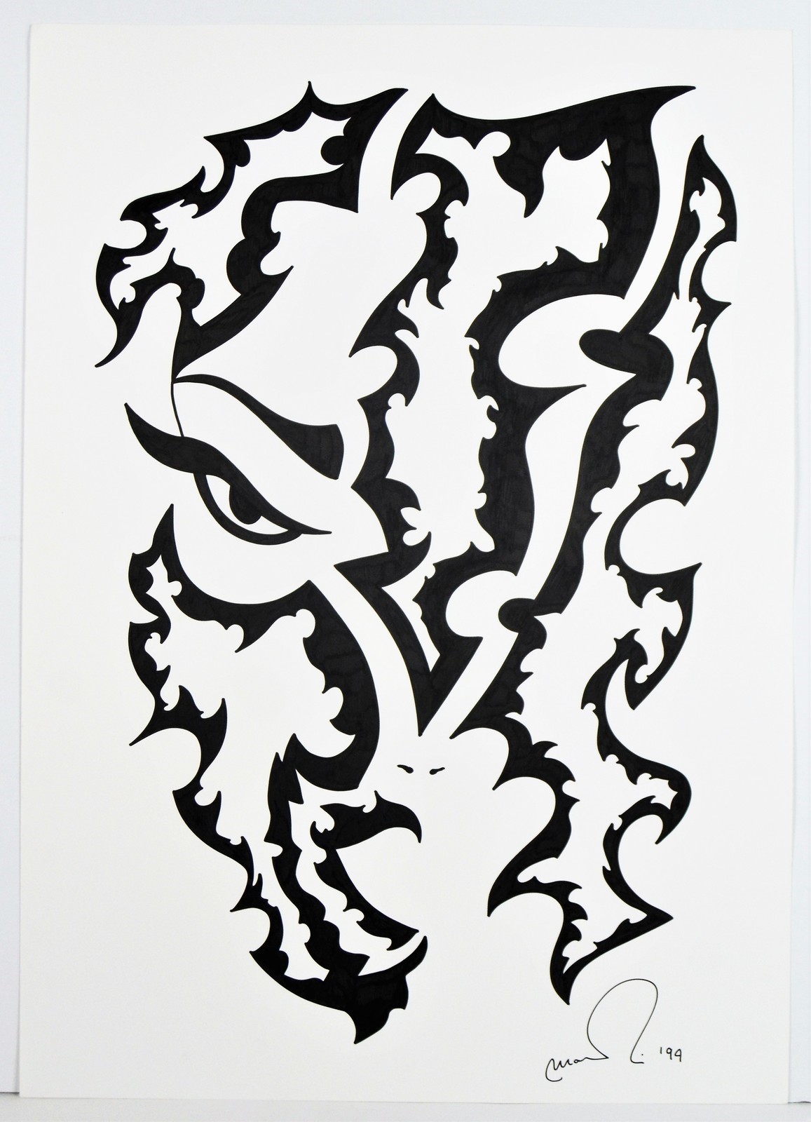 NON IDENTIFICATO AUTORE Senza titolo. 1999. Disegno a china su cartoncino. Cm 50,00 x 70,00. Firma e anno in basso a destra.