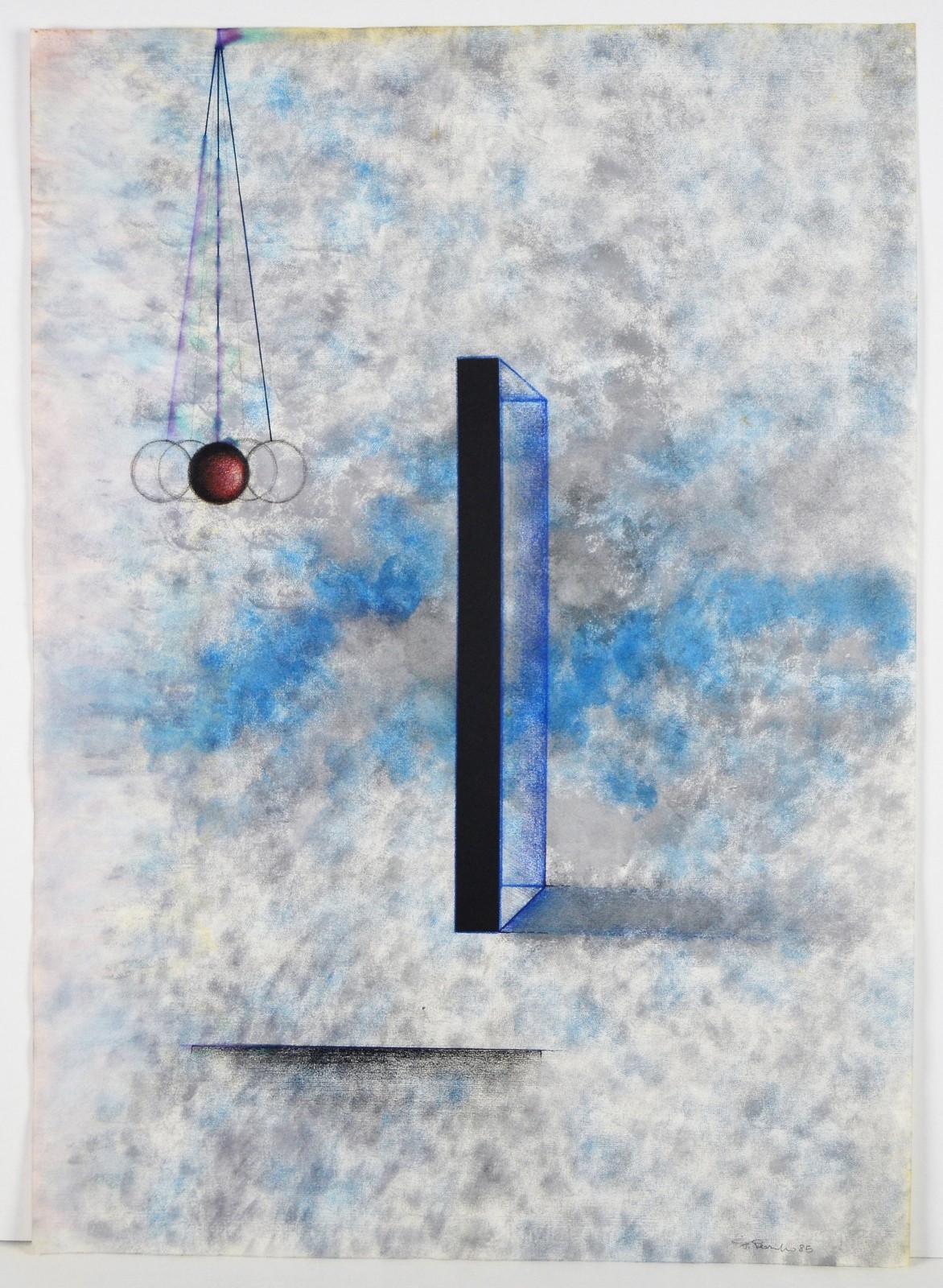 NON IDENTIFICATO AUTORE Senza titolo. 1985. Tecnica mista su carta. Cm 70,00 x 50,00. Firma (Pezzino) e anno in basso a destra.