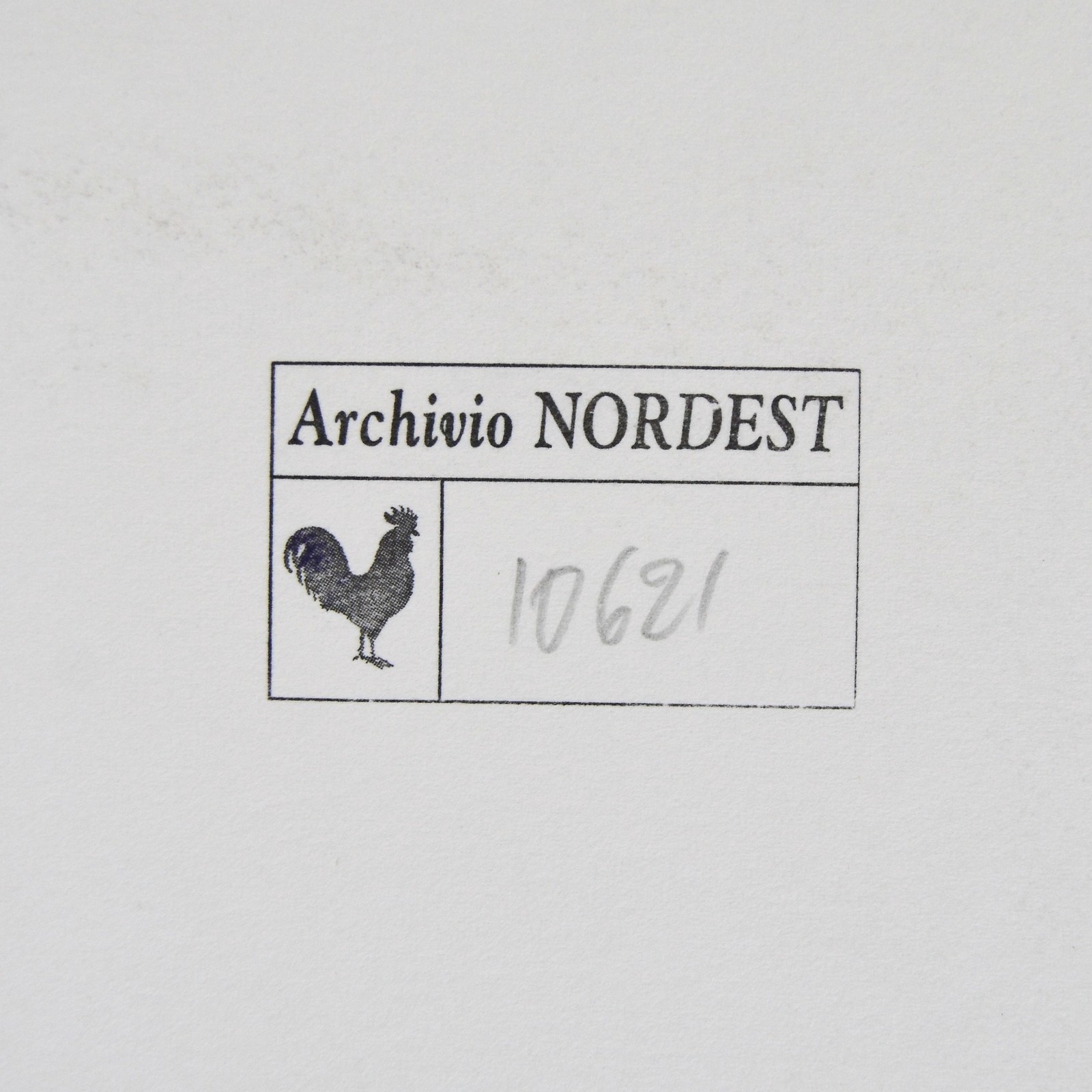 DODO (1907 - 1998) Senza titolo. Pigmenti su cartoncino. Cm 50,00 x 70,00. 1/3. Tiratura a matita in basso a sinistra, firma a stampa in basso a destra. Al retro timbro Archivio Nordest, Seregno (MB). Opera archiviata presso l'Archivio Nordest, Seregno, come da documentazione allegata all'opera riportante il relativo numero di inventario.