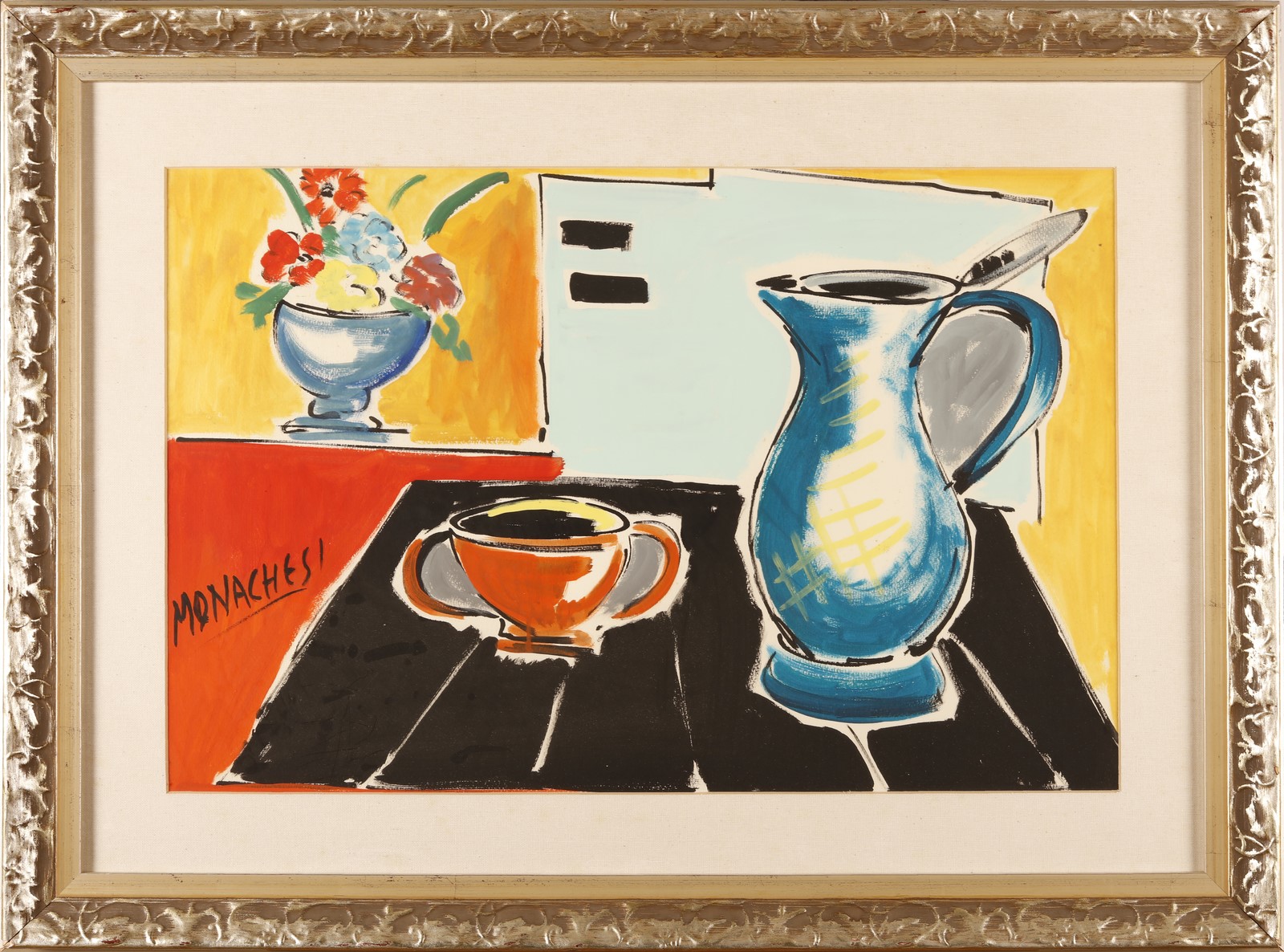 MONACHESI SANTE (1910 - 1991) Natura morta. Olio su cartoncino. Cm 58,00 x 38,00. Firma in basso a sinistra. Cornice presente