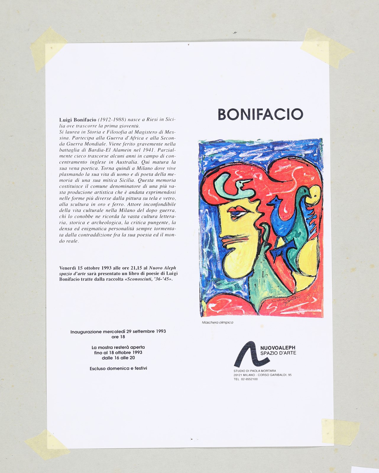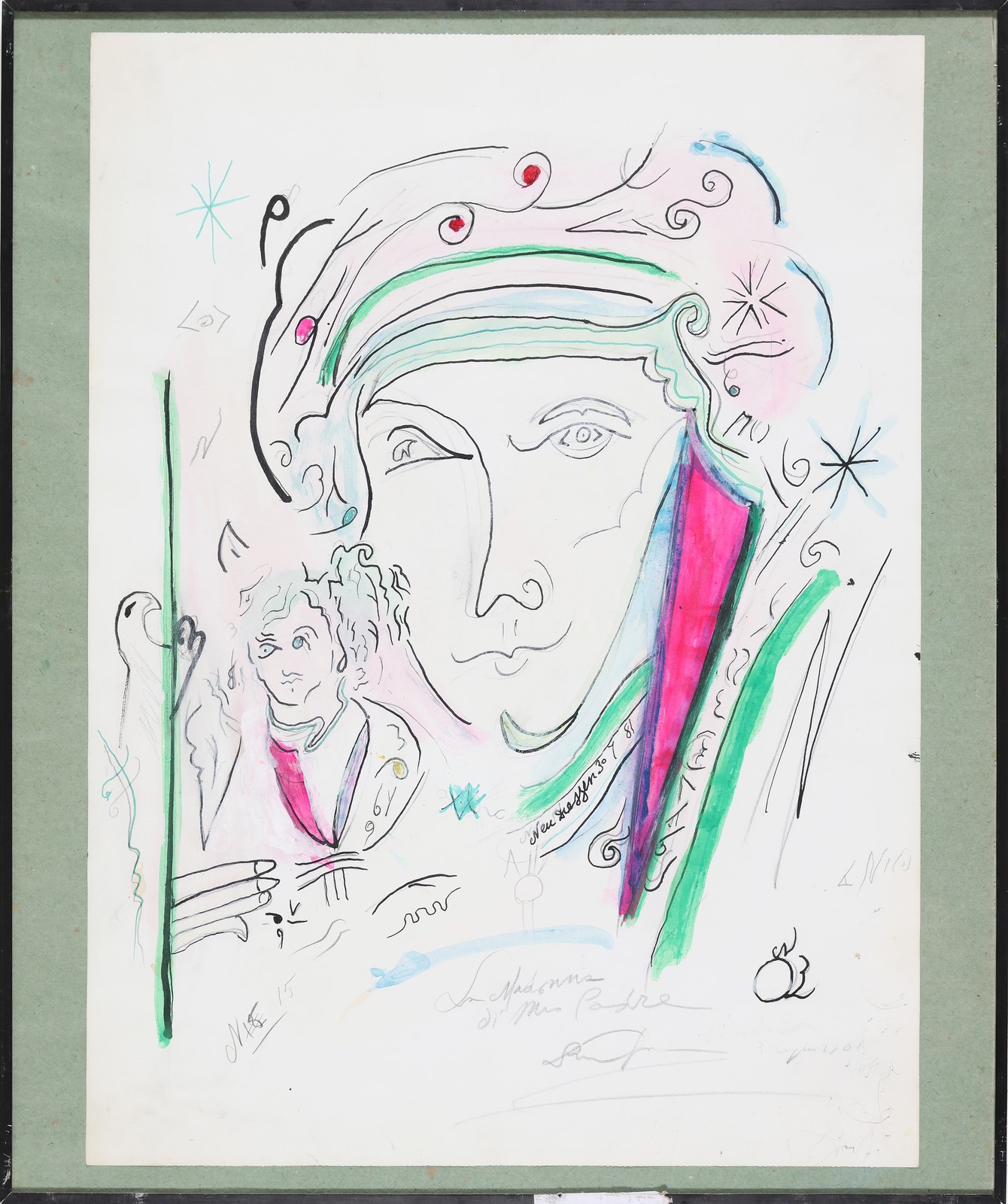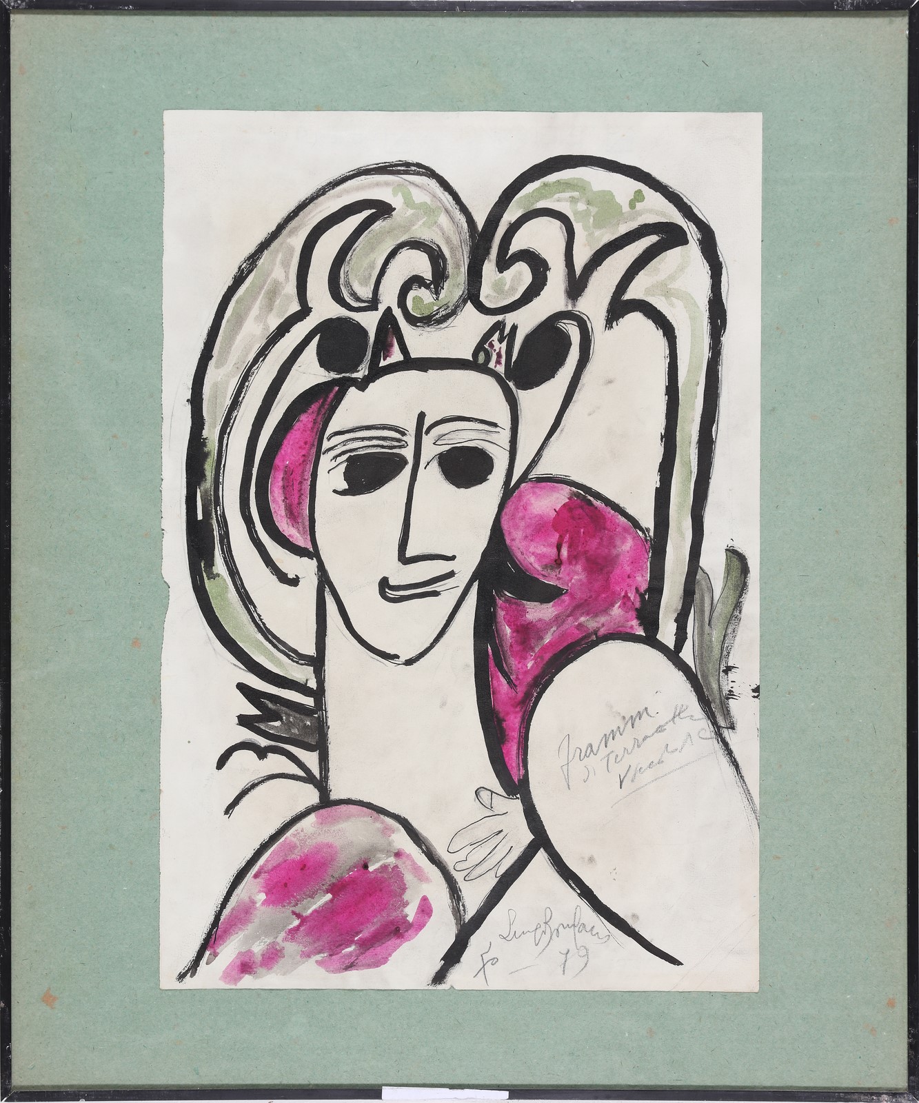 BONIFACIO LUIGI Lot composed of.3 artworks. mixed media on paper. . 1) Woman face, 48.5x33 cm, signature and year lower centre, title lower right, 1979. 2) La Madonna di mio padre, signature and year lower, 1981, 56.8x42 cm. 3)Untitled, signature and year lower right, 1974, 49.5x34.5 cm. Cornice presente