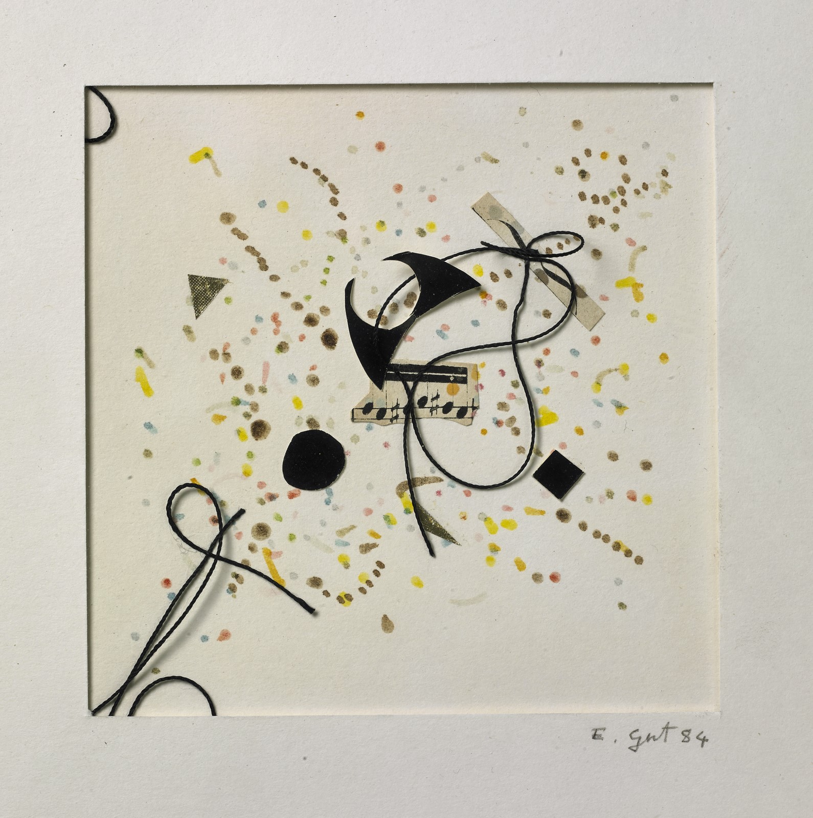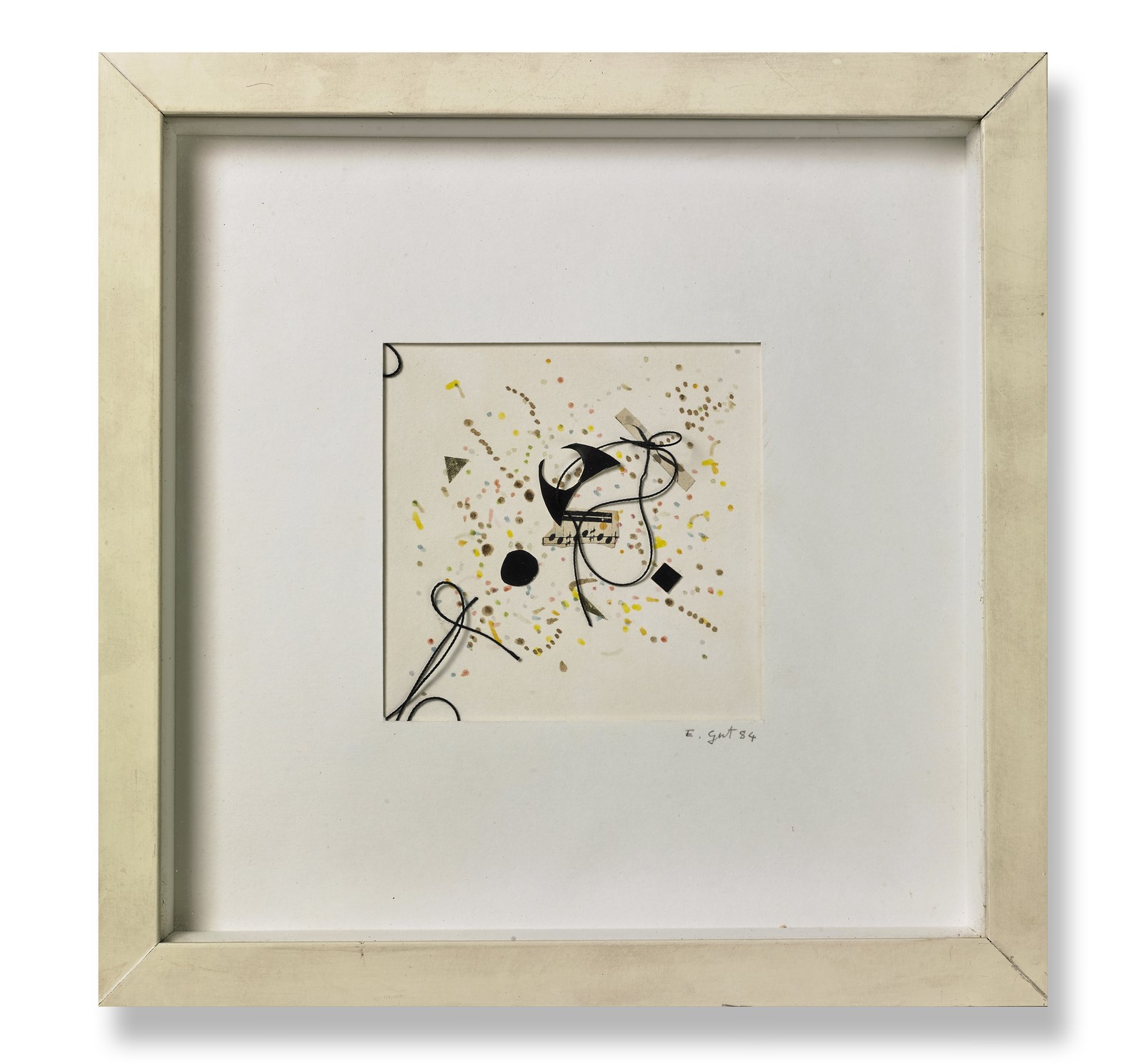 GUT ELISABETTA (n. 1934) Senza titolo. 1984. Tecnica mista su cartone. Cm 12,00 x 12,00. Firma e anno in basso a destra. Cornice presente