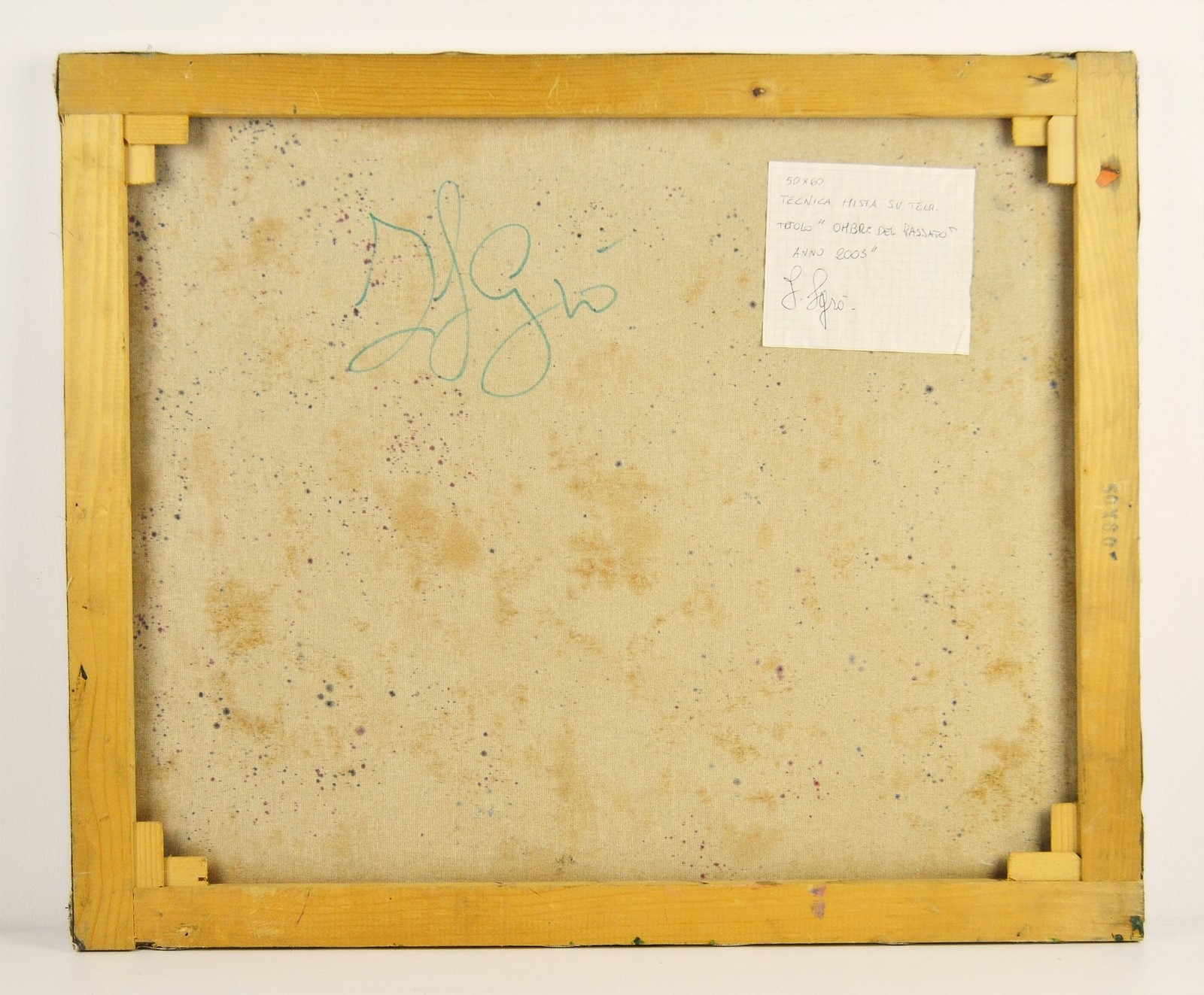 Autore non identificato. Untitled (Ombre del passato). 2005. Mixed media on canvas. Cm 60,00 x 50,00. Signature at the back.