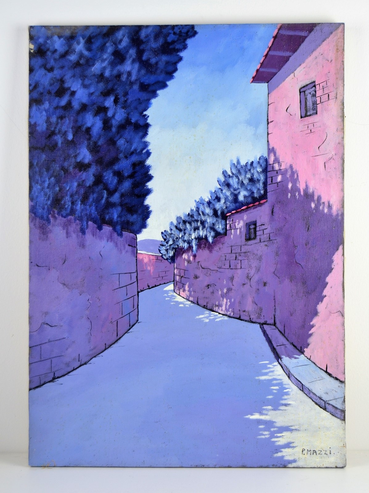 MAZZI PIERO (n. 1938) Avenue. Oil on canvas . Cm 70,00 x 50,00. Signature lower right. At the back artist's label.