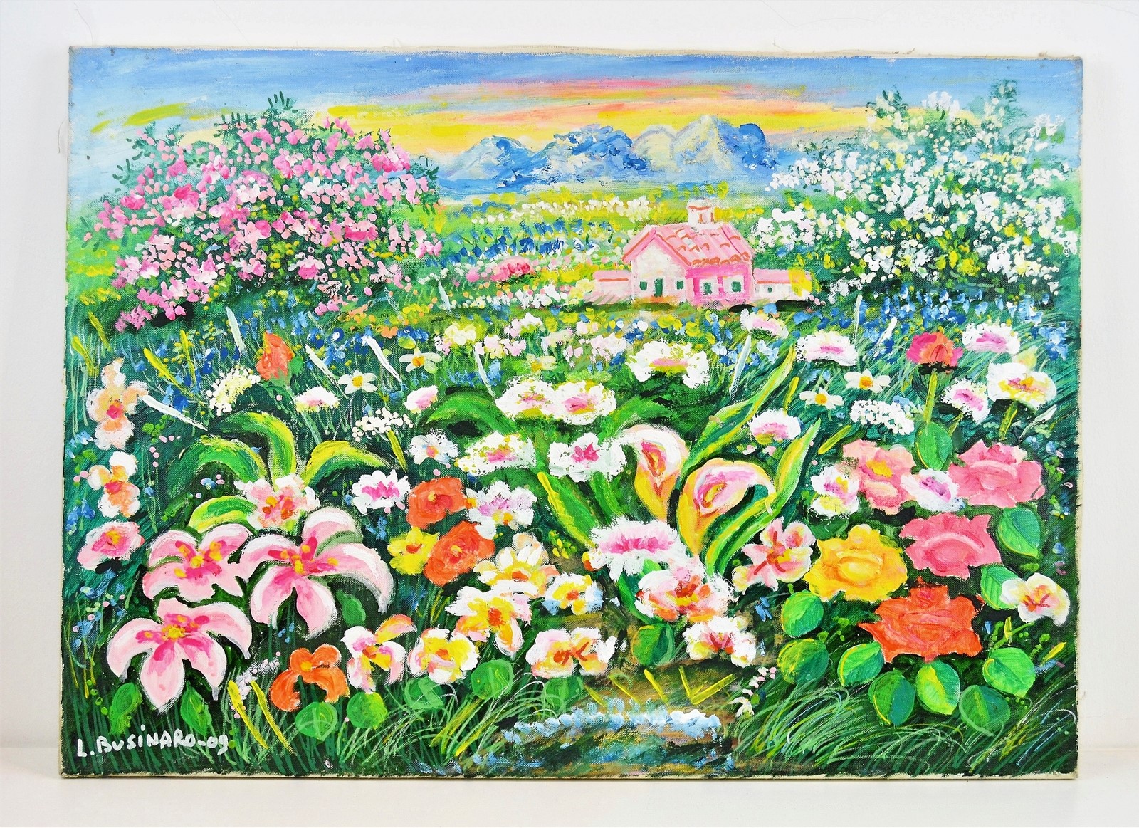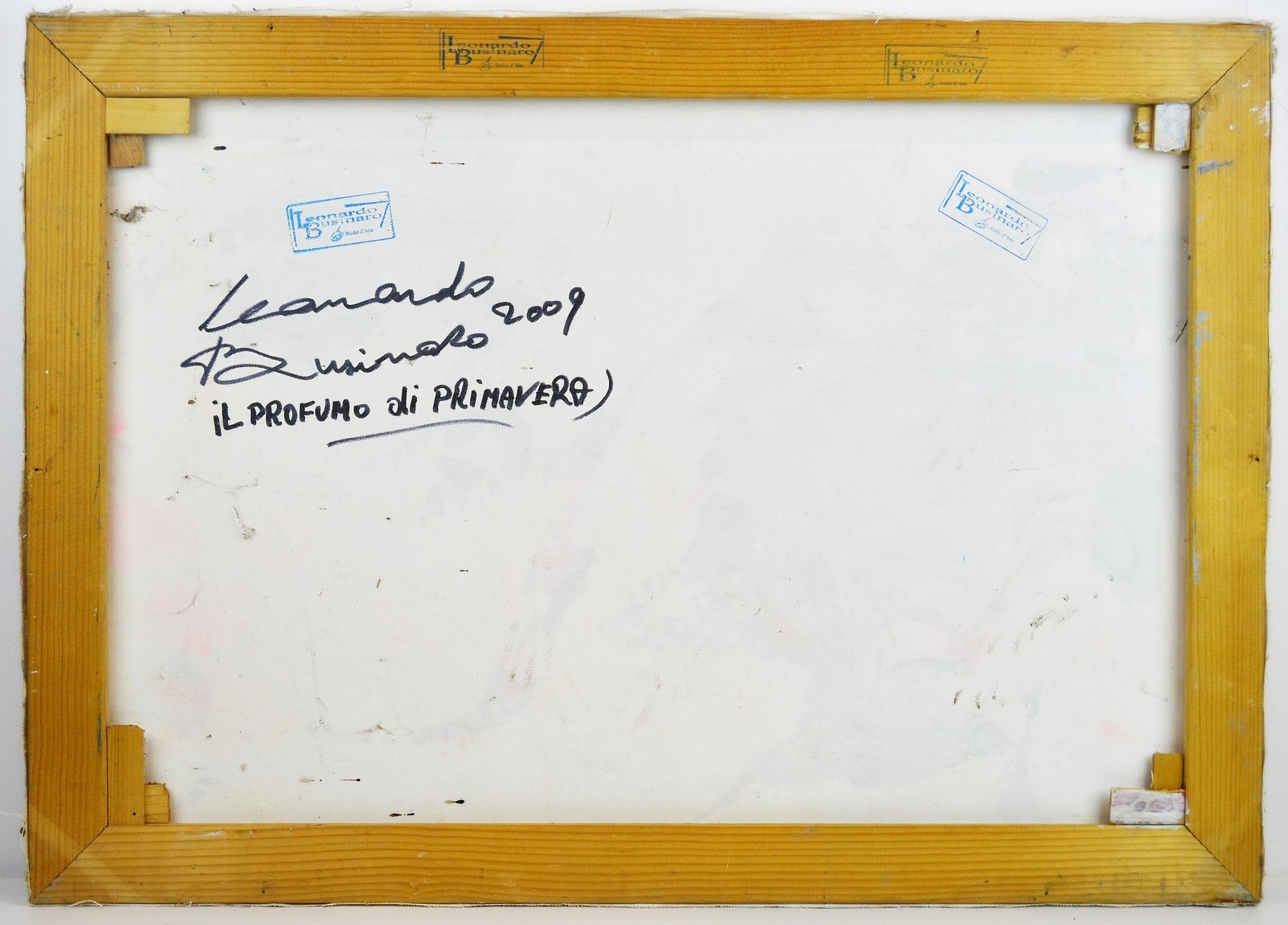 BUSINARO LEONARDO Il profumo di primavera. 2009. Olio su tela . Cm 70,00 x 50,00. Firma e anno in basso a sinistra. Al retro titolo, firma, anno e timbro dell'artista.