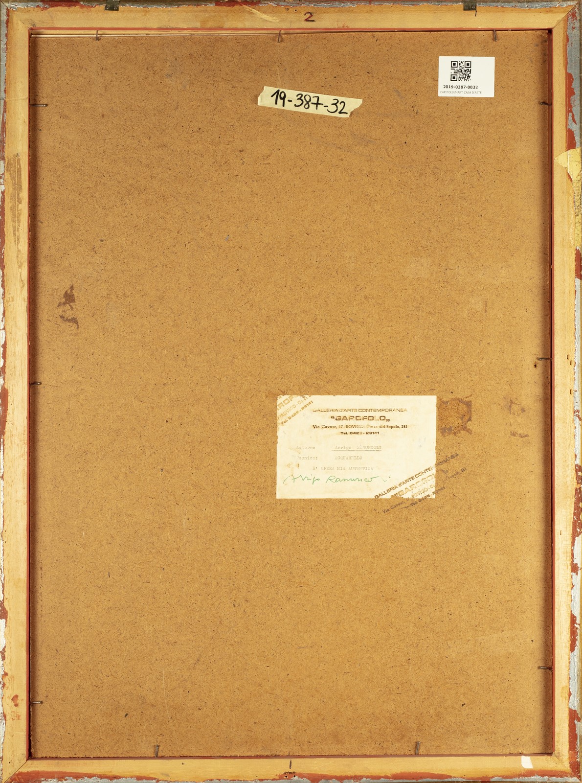NON IDENTIFICATO AUTORE Untitled. Watercolour on paper. Cm 32,00 x 25,00. Signature (Arrigo Ranuncoli) lower left. At the back Garofalo Gallery, Rovigo label.. Cornice presente