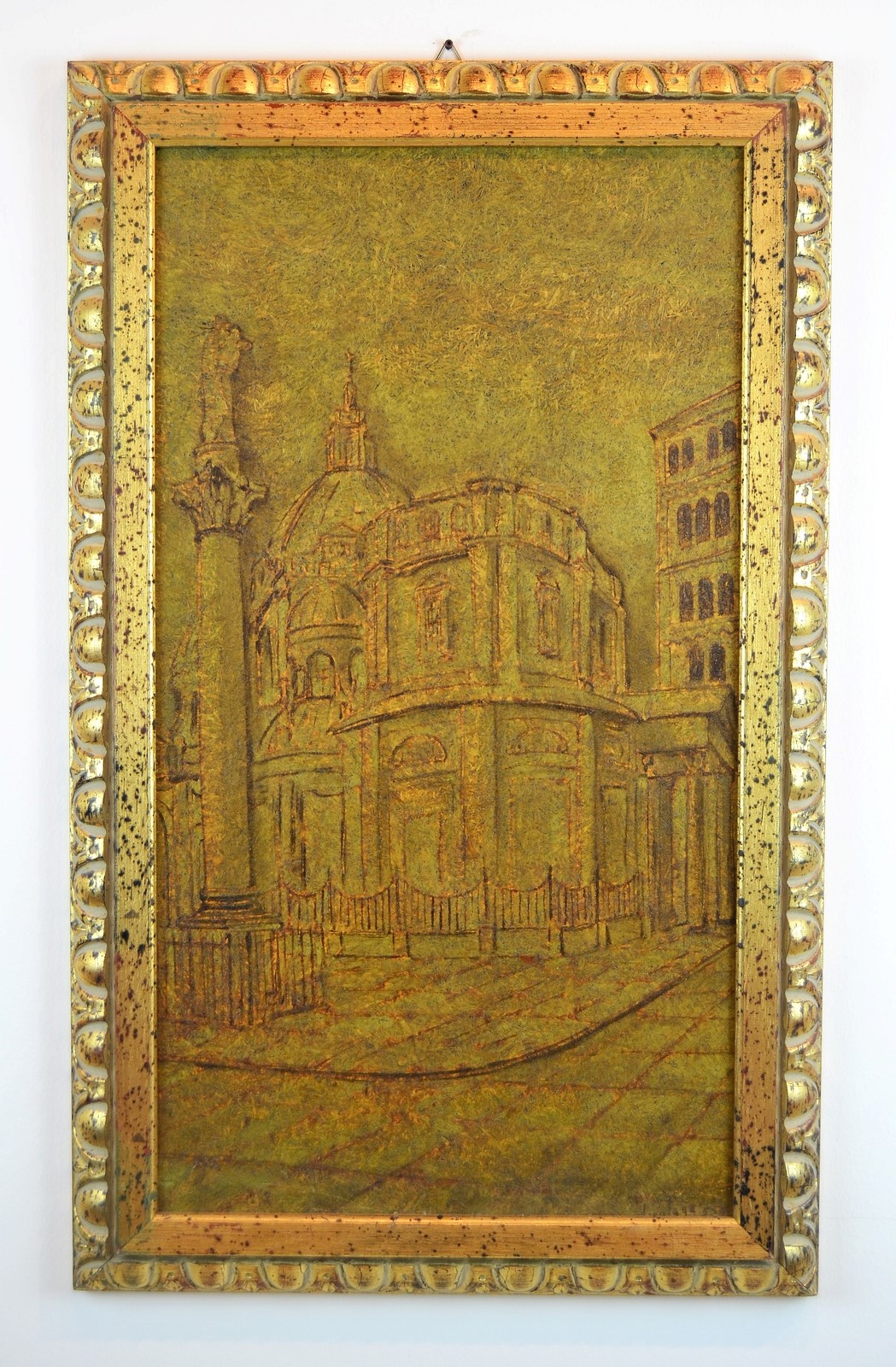 NON IDENTIFICATO AUTORE Untitled. Mixed nomes on board. Cm 65,00 x 35,00. Signature and year lower right. Cornice presente