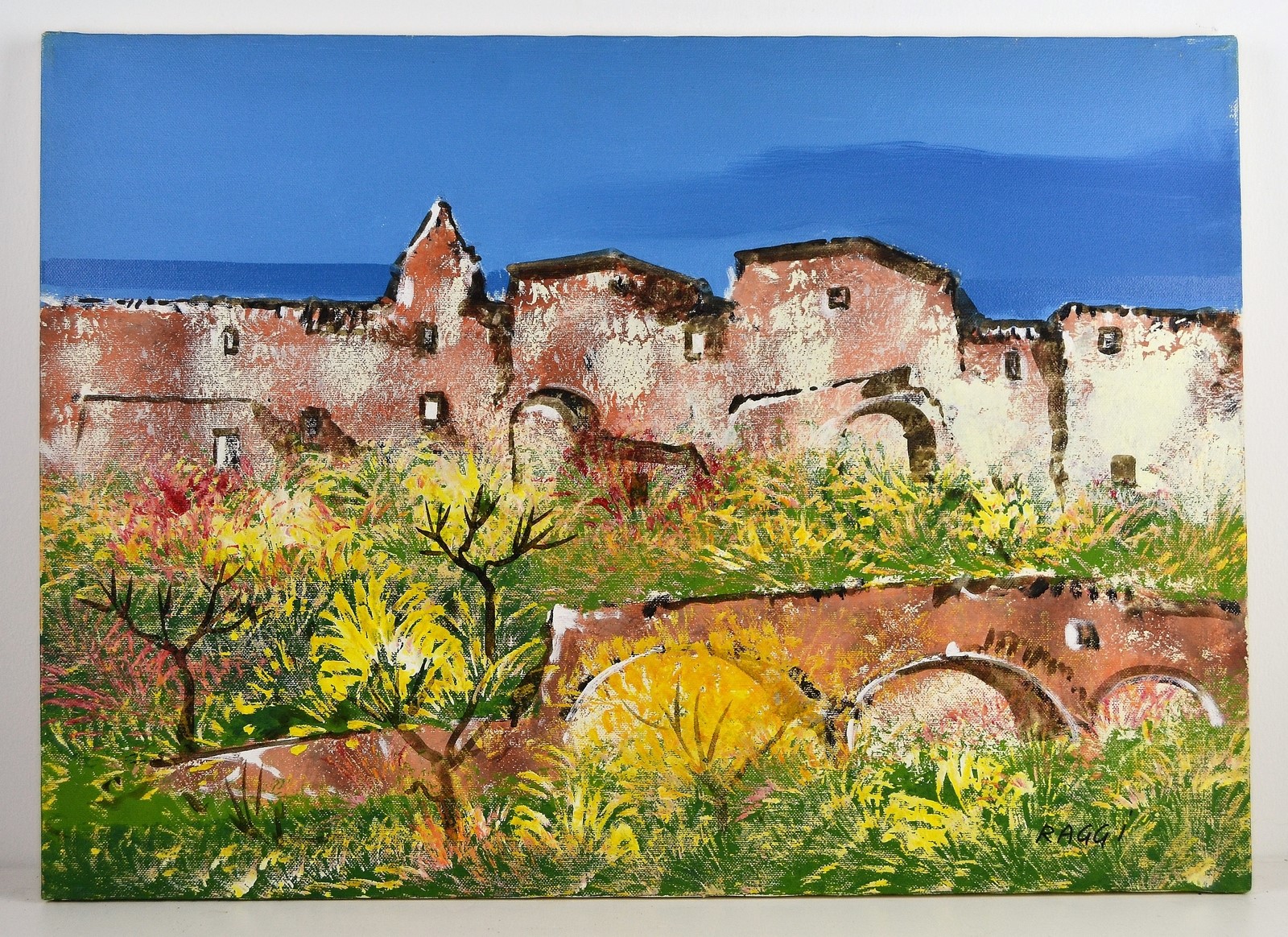 NON IDENTIFICATO AUTORE Senza titolo. Olio su tela . Cm 70,00 x 50,00. Firma (Raggi) in basso a destra.