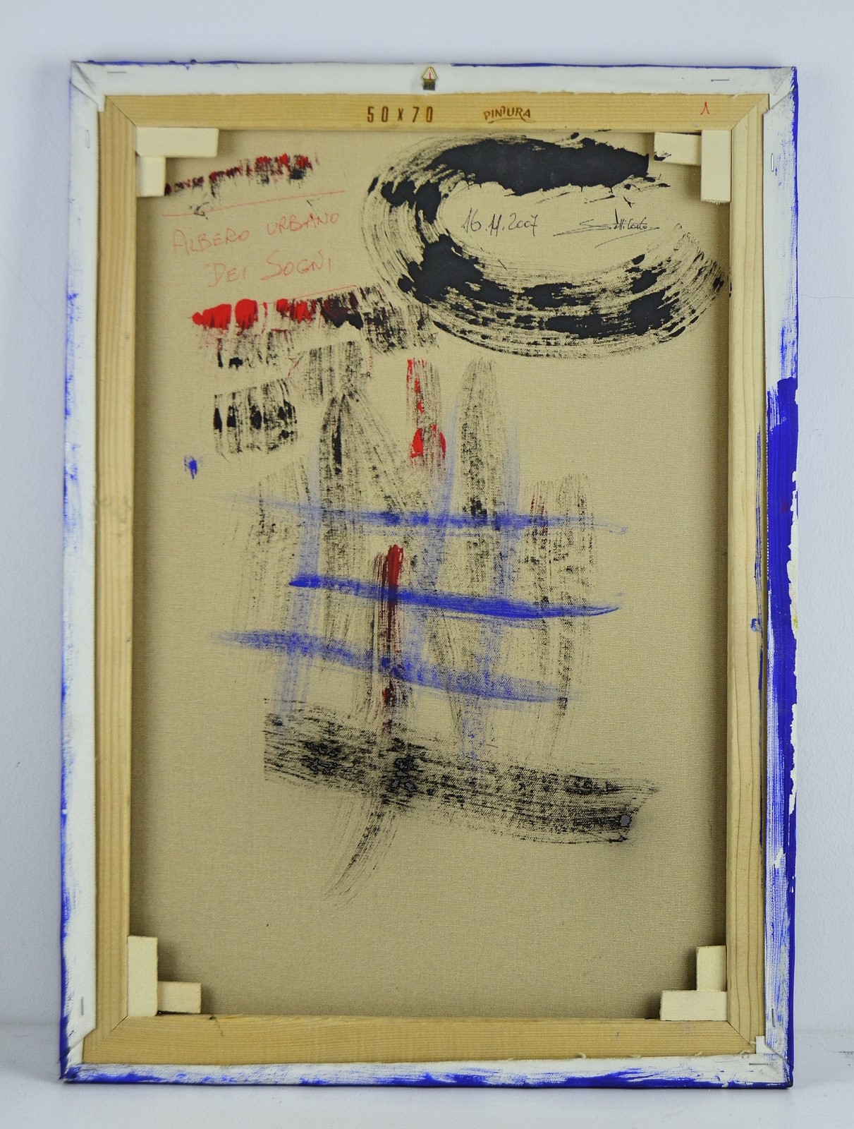 NON IDENTIFICATO AUTORE Albero urbano dei sogni. 2007. Tecnica mista su tela. Cm 70,00 x 50,00. Al retro titolo, firma e anno.