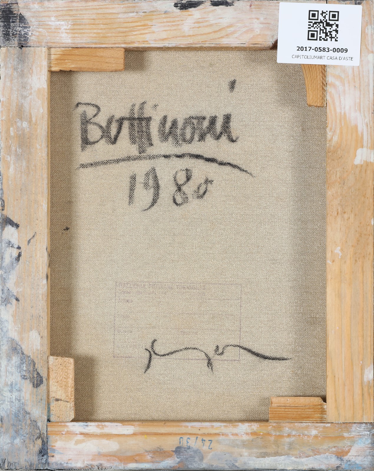 NON IDENTIFICATO AUTORE Untitled. Mixed media on canvas. Cm 24,00 x 30,00. Signature (Buttinoni) lower left. At the back signature, year and Ferrari Gallery stamp.