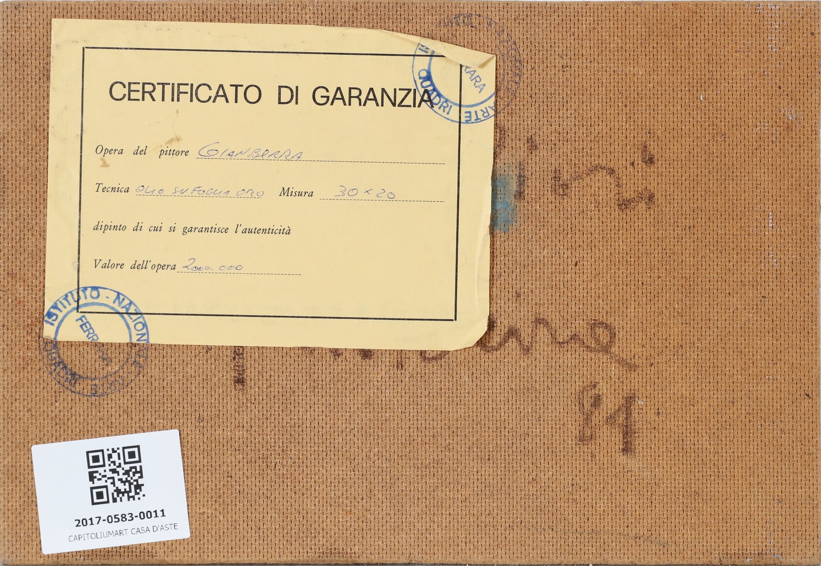 NON IDENTIFICATO AUTORE Fiori. 1984. Tecnica mista su faesite. Cm 30,00 x 20,00. Firmato Gianberra in basso a destra. Al retro titolo, firma, anno e certificato di garanzia a cura dell'Istituto Nazionale d'Arte, Ferrara.