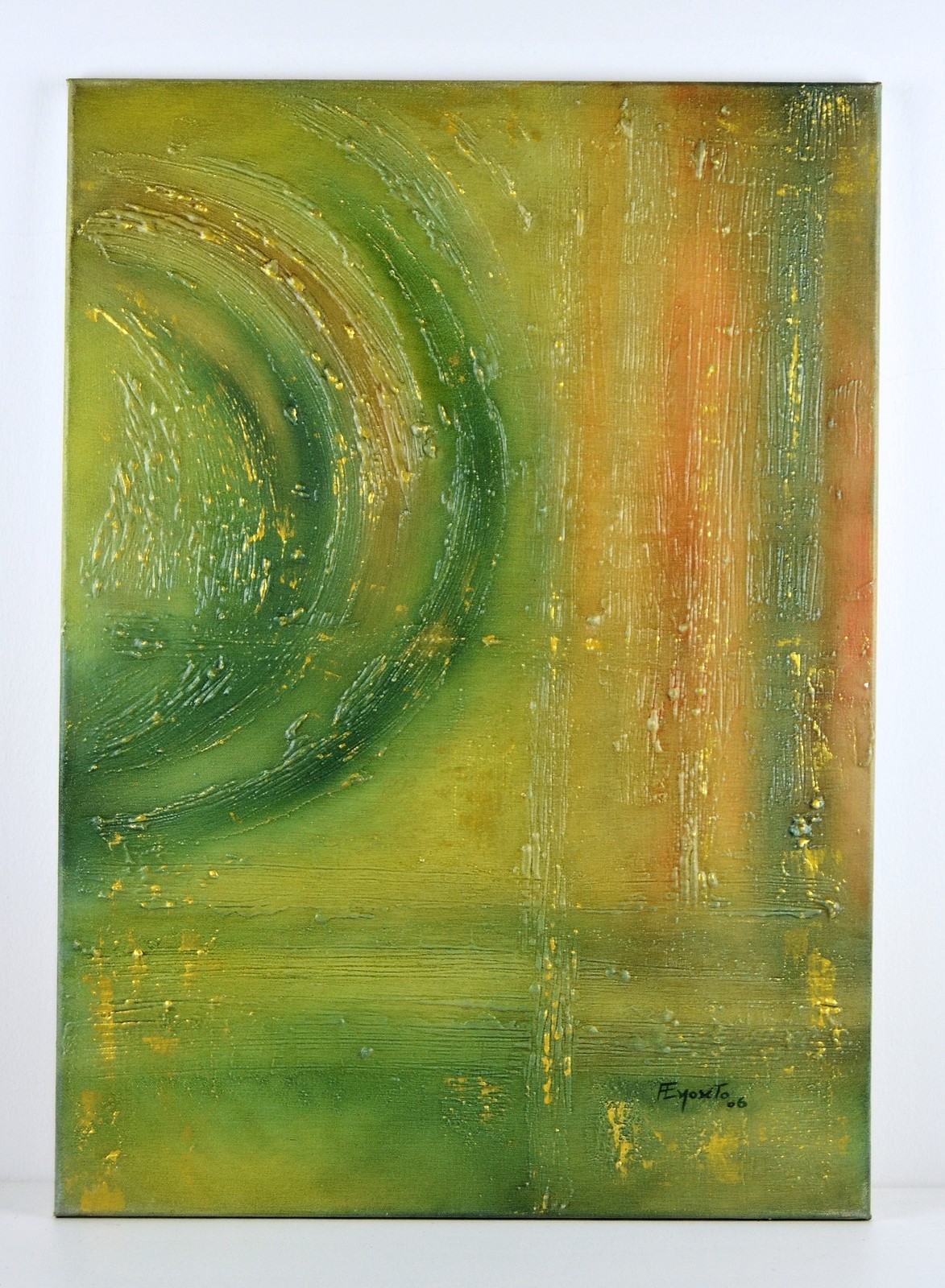 NON IDENTIFICATO AUTORE Senza titolo. 2006. Tecnica mista su tela. Cm 70,00 x 50,00. Firma (Esposito) e anno in basso a destra.