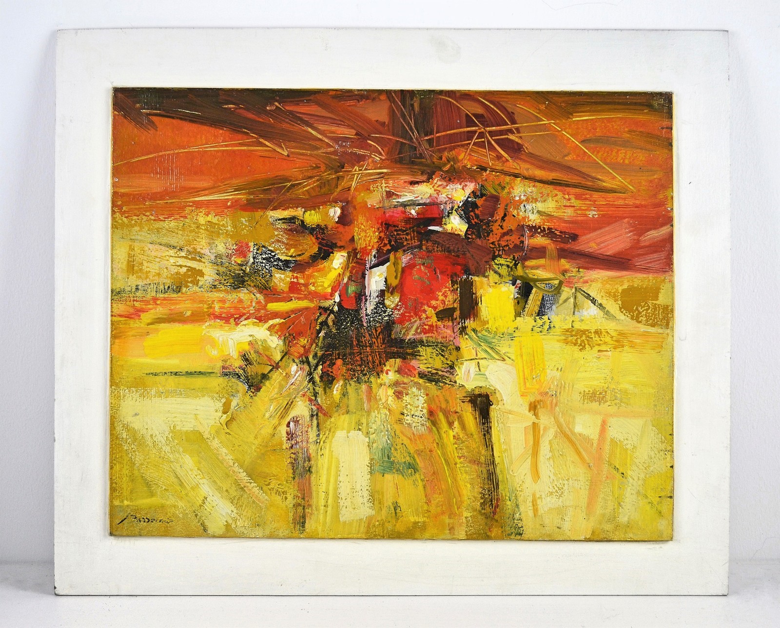 BISSACCO MARTINO (n. 1941) Untitled (Impulsi d'estate). Oil on board. Cm 50,00 x 40,00. Signature lower left. At the back signature, title and artist's stamp.