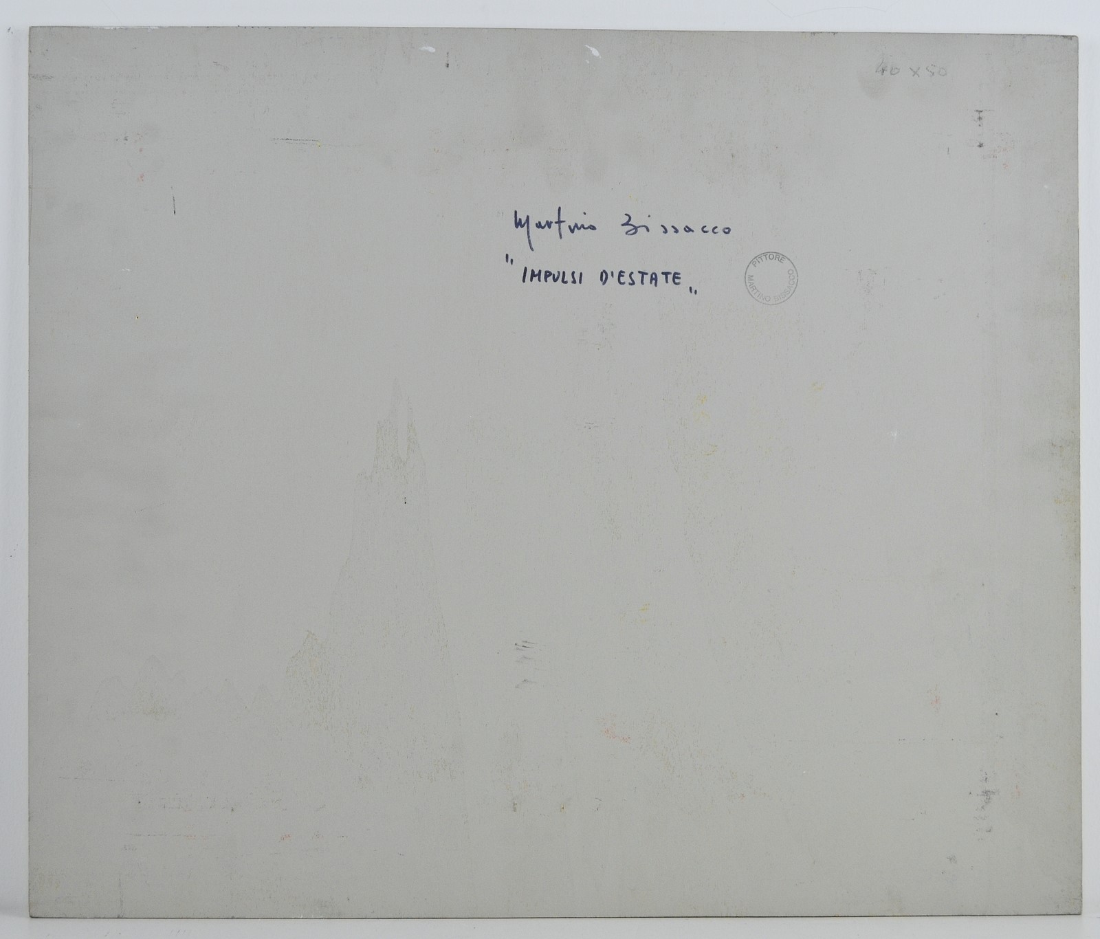 BISSACCO MARTINO (n. 1941) Impulsi d'estate. Olio su tavola. Cm 50,00 x 40,00. Firma in basso a sinistra. Al retro firma, titolo e timbro dell'artista.