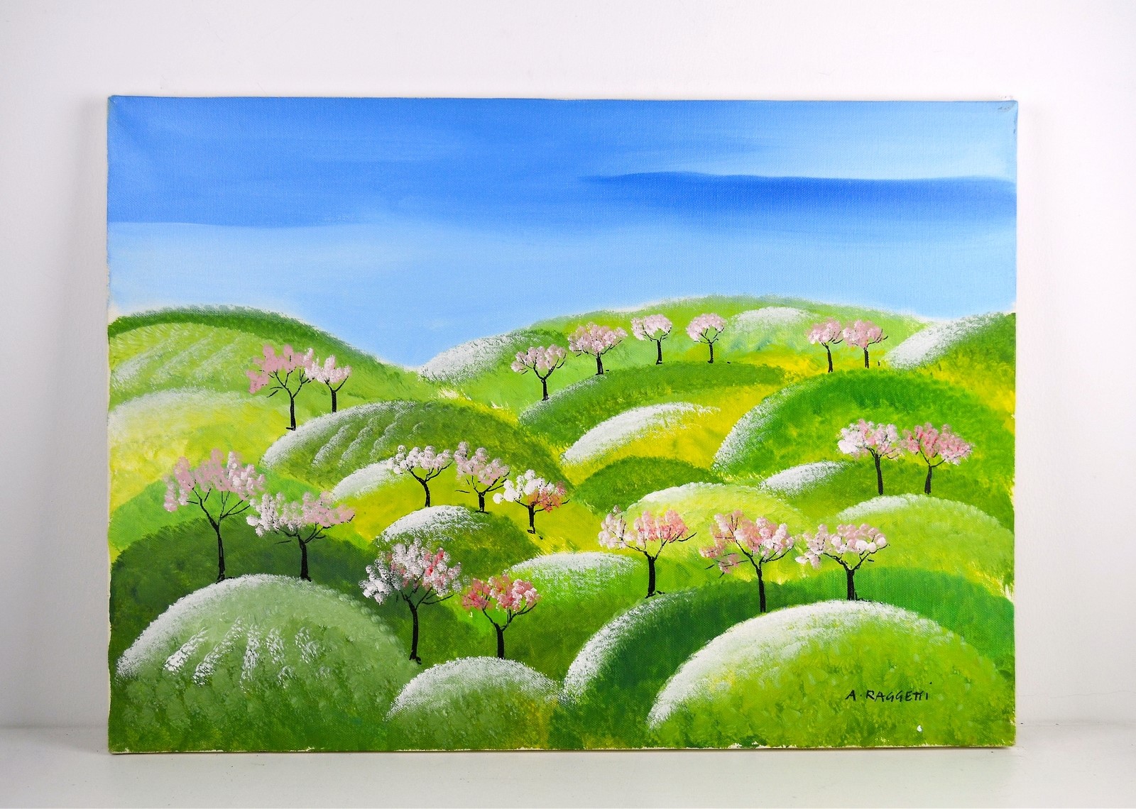 RAGGETTI ANTONIO Senza titolo. Olio su tela . Cm 70,00 x 50,00. Firma in basso a destra.