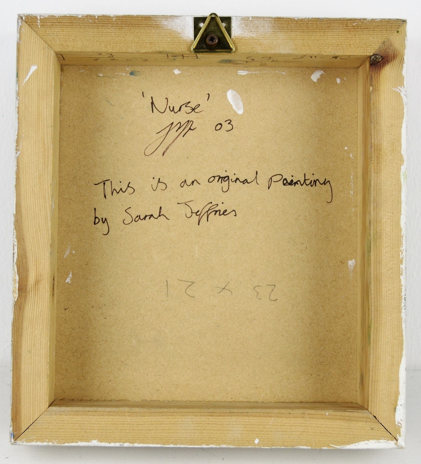 JEFFREIES SARAH (n. 1979) Nurse. 2003. Oil on board. Cm 21,00 x 23,00. At the back title, signature and year.