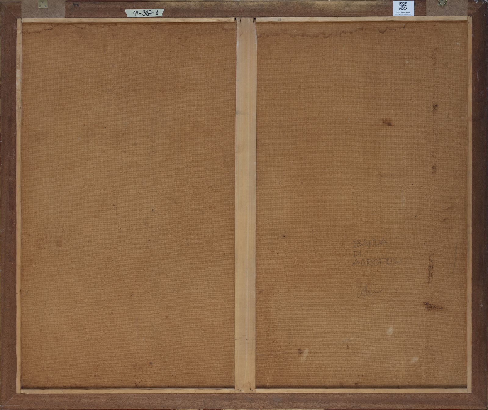 NON IDENTIFICATO AUTORE Untitled (Banda di agropoli). Tempera on cardboard. Cm 110,00 x 90,00. Signature and year at the back.. Cornice presente