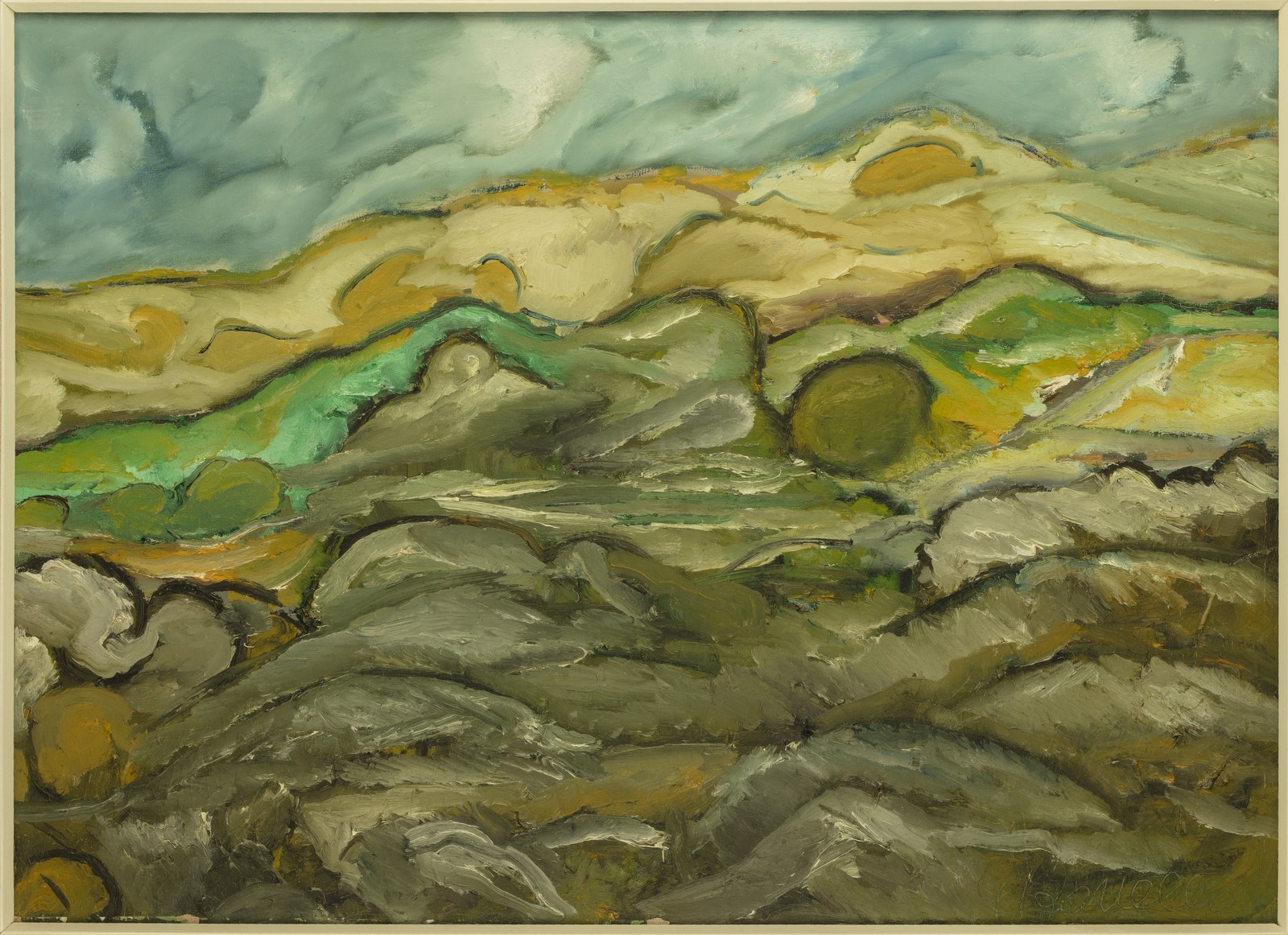 NON IDENTIFICATO AUTORE Senza titolo. 1966. Olio su tela . Cm 70,00 x 50,00. Firma (G. Bonello) in basso a destra e al retro. Cornice presente