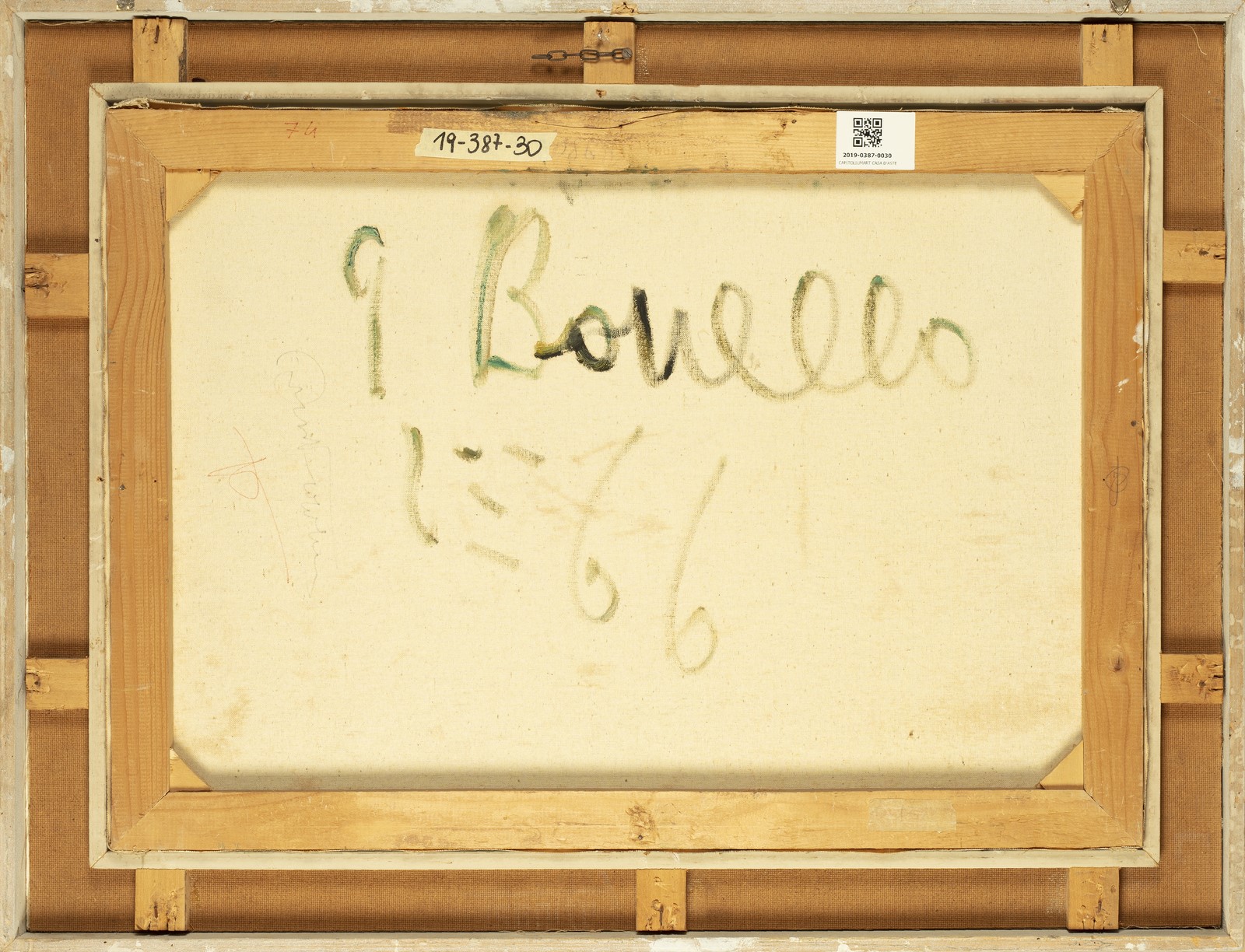 NON IDENTIFICATO AUTORE Untitled. 1966. Oil on canvas . Cm 70,00 x 50,00. Signature (G. Bonello) lower right and at the back. Cornice presente