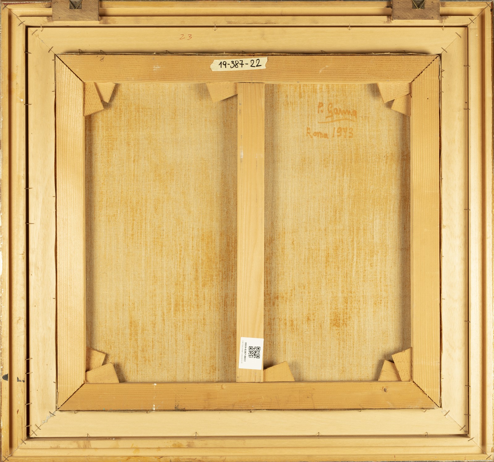 GANNA PAOLO Untitled. 1973. Oil on canvas . Cm 65,00 x 60,00. Signature lower right. At the back signature and year.. Cornice presente