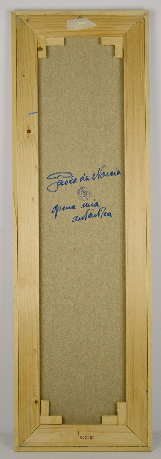 DA NORCIA PAOLO (n. 1953) Untitled. Oil on canvas . Cm 100,00 x 30,00. Signature lower left. At the back signature and artist's stamp. Small defects.