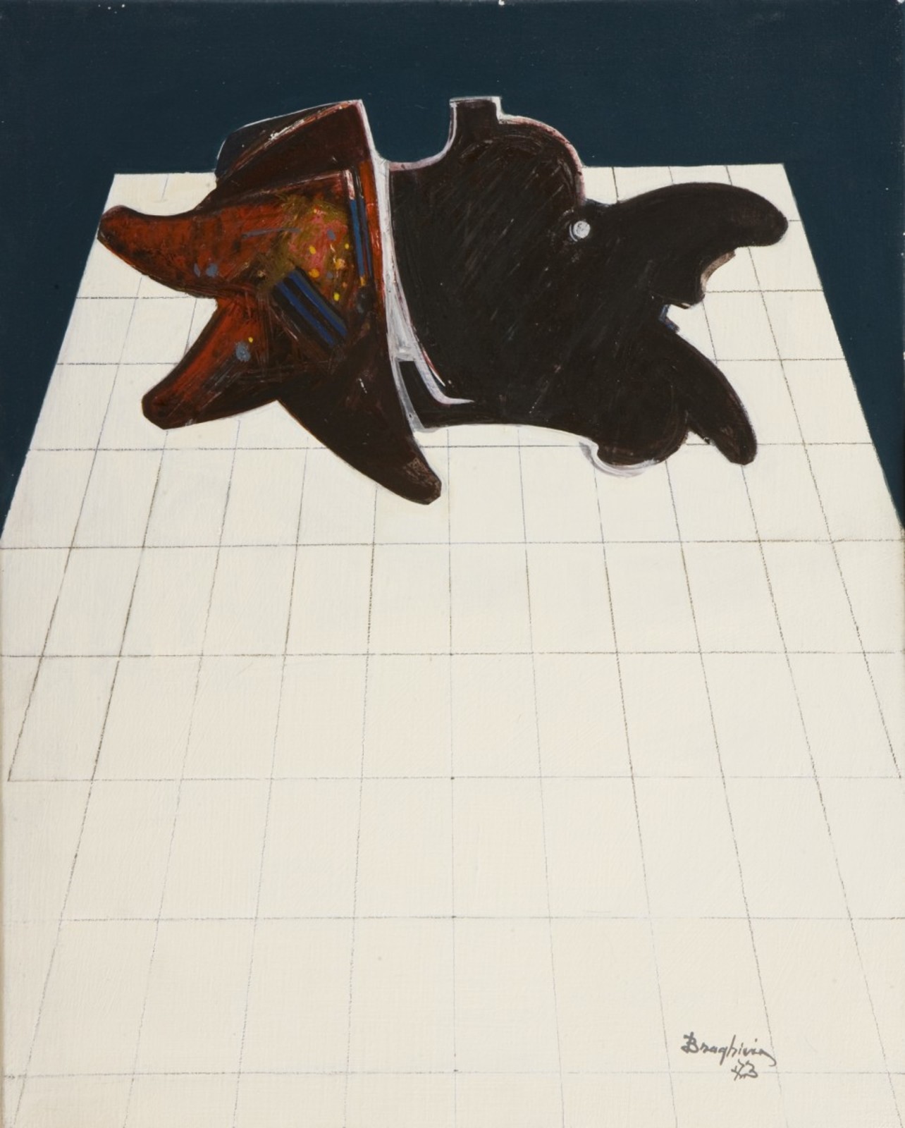 BRAGHIERI GIANCARLO (n. 1930) Senza titolo. 1973. Acrilico su tela. Cm 40,00 x 30,00. Firma e anno in basso a destra. Cornice presente