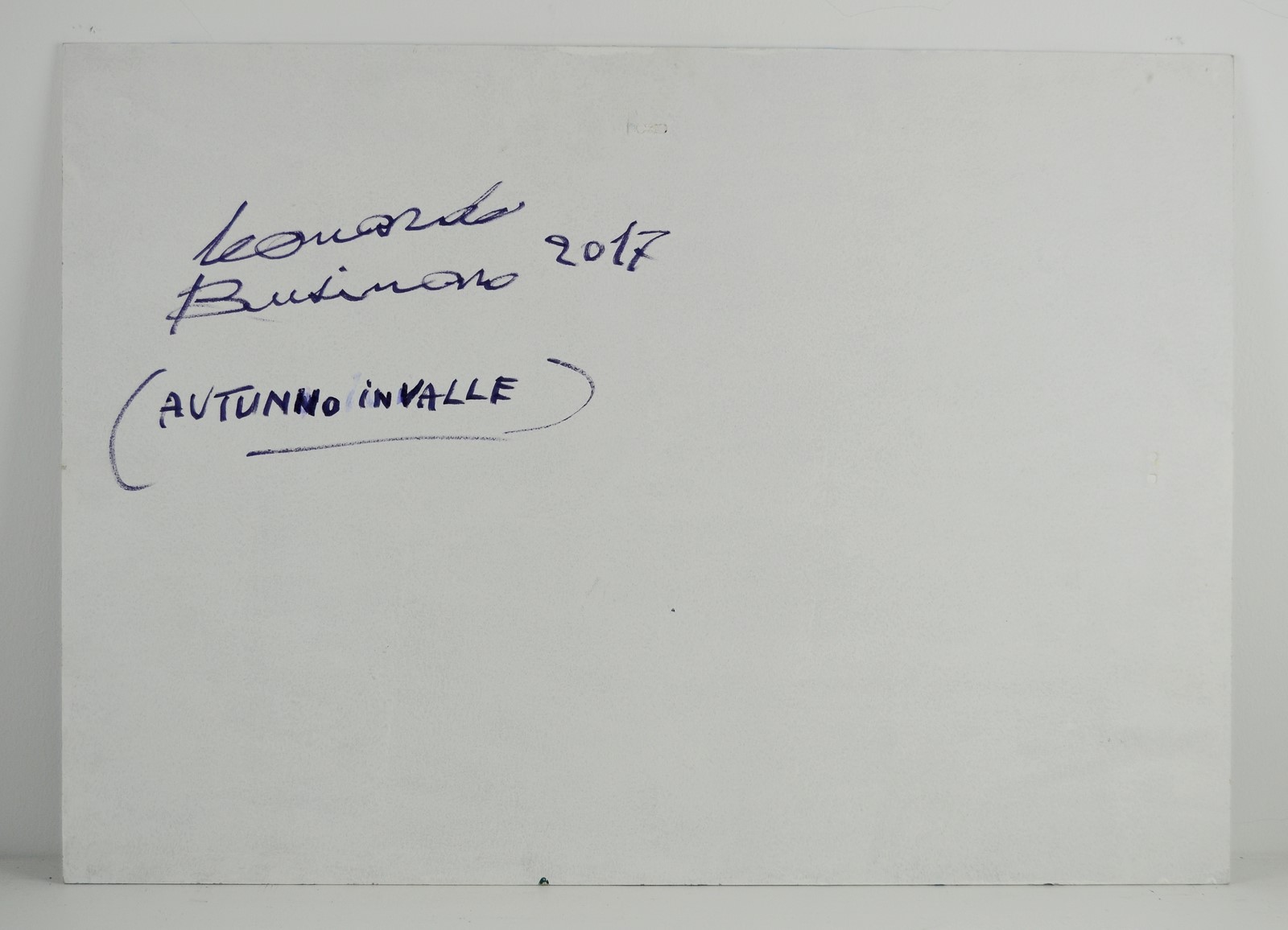 BUSINARO LEONARDO Untitled (Autunno in valle). 2017. Oil on board. Cm 100,00 x 70,00. Signature and year lower left. At the back title, signature and year.
