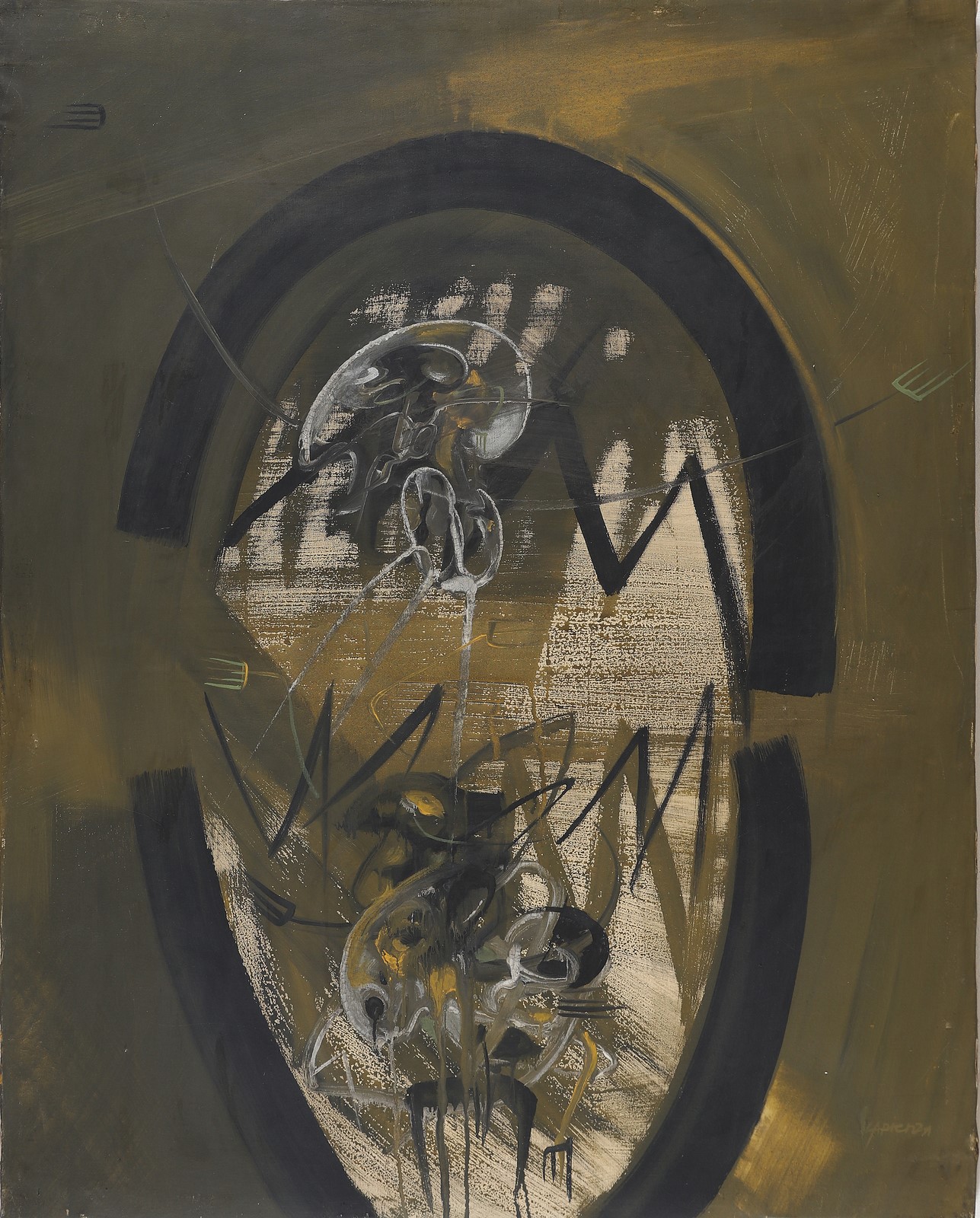 SAPIENZA ANTONIO (n. 1936) Untitled (Condizione Umana. Op.5). Oil on canvas . Cm 80,00 x 100,00. Signature lower right and tile at the back. Defects.