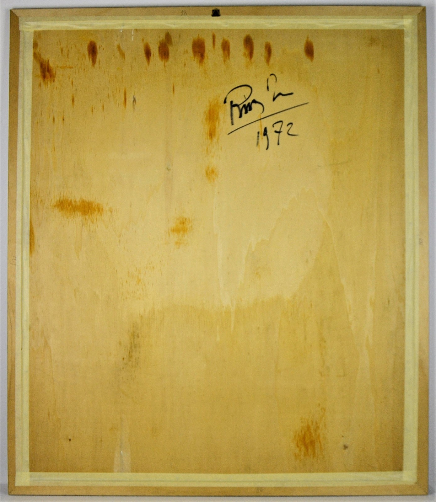 RIVA ERNESTO Senza titolo. 1972. Tecnica mista su legno. Cm 85,00 x 100,00. Al retro firma e anno. . Cornice presente