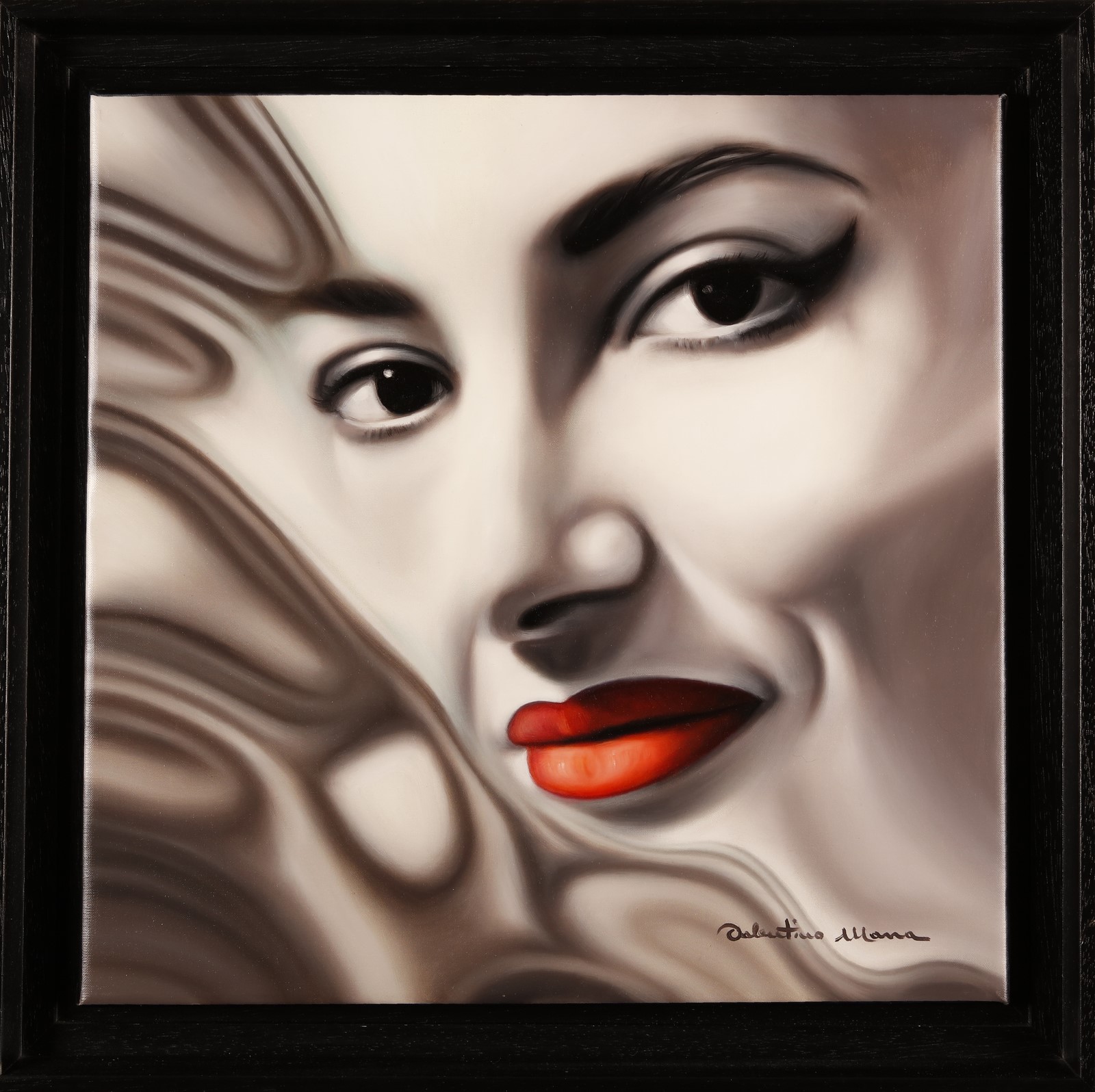 MARRA VALENTINO (n. 1956) Callas. 2014. Olio su tela . Cm 40,00 x 40,00. Firma in basso a destra. Al retro titolo, firma, anno e timbro dell'artista. Cornice presente
