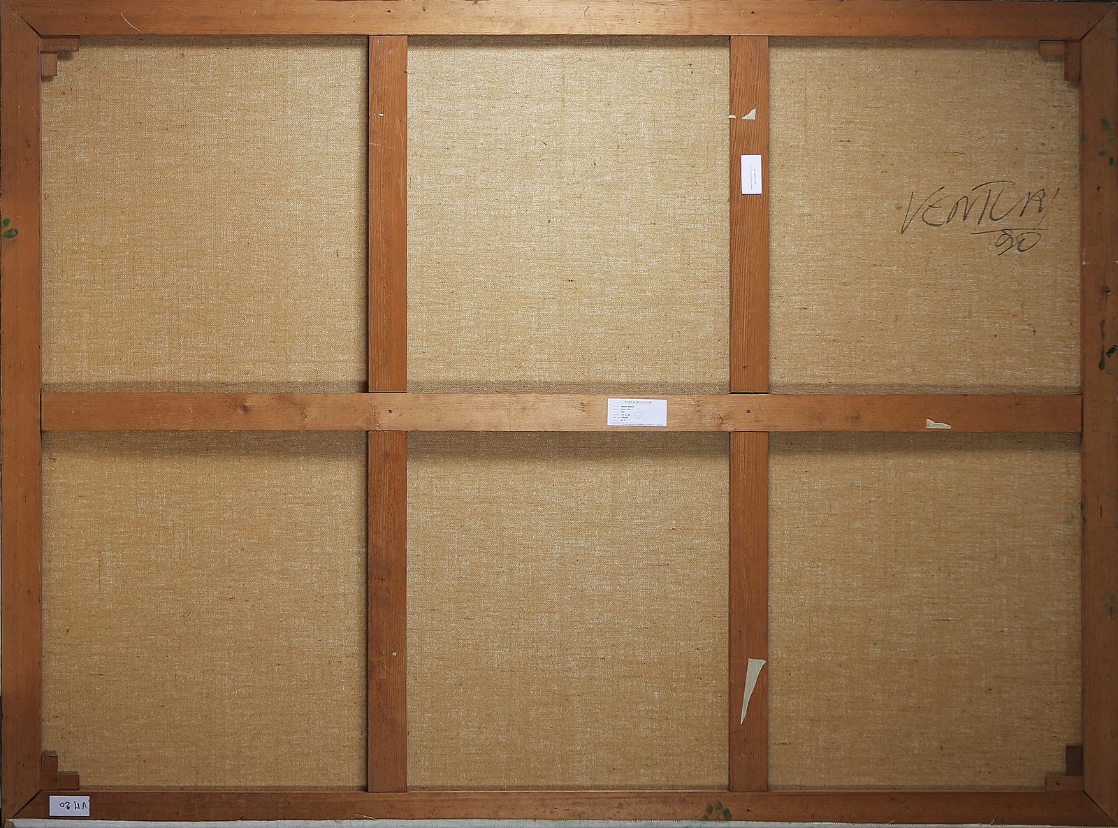 VENTURI MICHELE (1932 - 2005) Senza titolo. 1990. Olio su tela . Cm 200,00 x 150,00. Al retro firma, anno e cartiglio descrittivo Galleria Valente, Finale Ligure (SV).