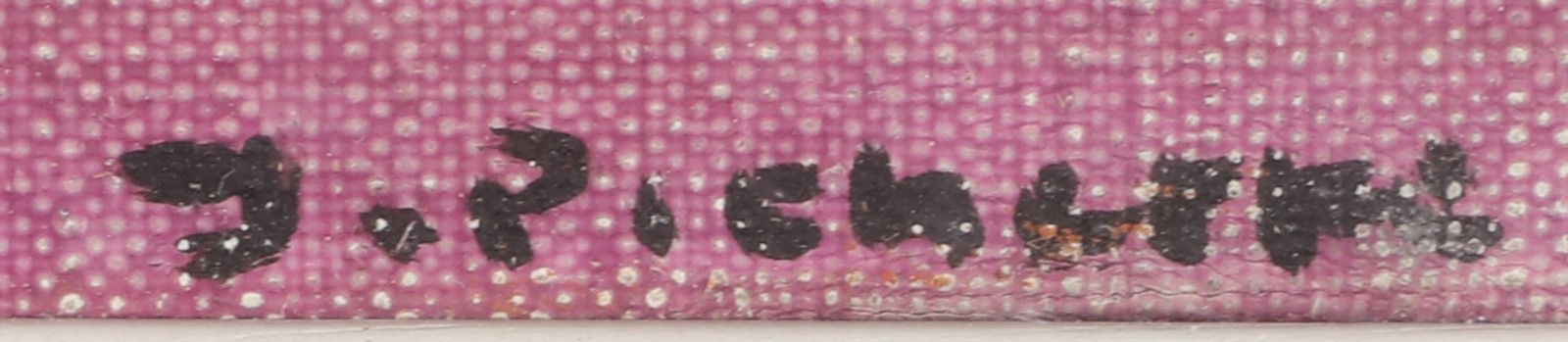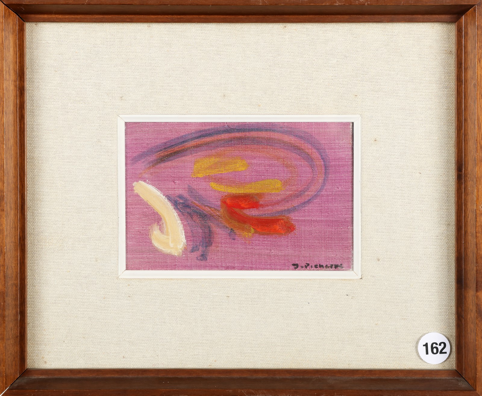 PICCHETTE JAMES (1920 - 1996) Les interrogatives II. 1967. Oil on canvas . Cm 15,00 x 10,00. Signature lower right. At the back title, signature and year. Cornice presente