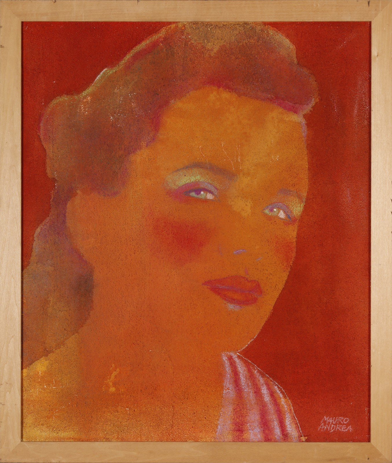 MAURO ANDREA (n. 1954) Mi guardi e io non fuggo. 1978. Acrilico su tela. Cm 50,00 x 60,00. Firma in basso a destra. Al retro titolo, firma e anno.Autentica dell'artista su fotografia. Presenti difetti. Cornice presente