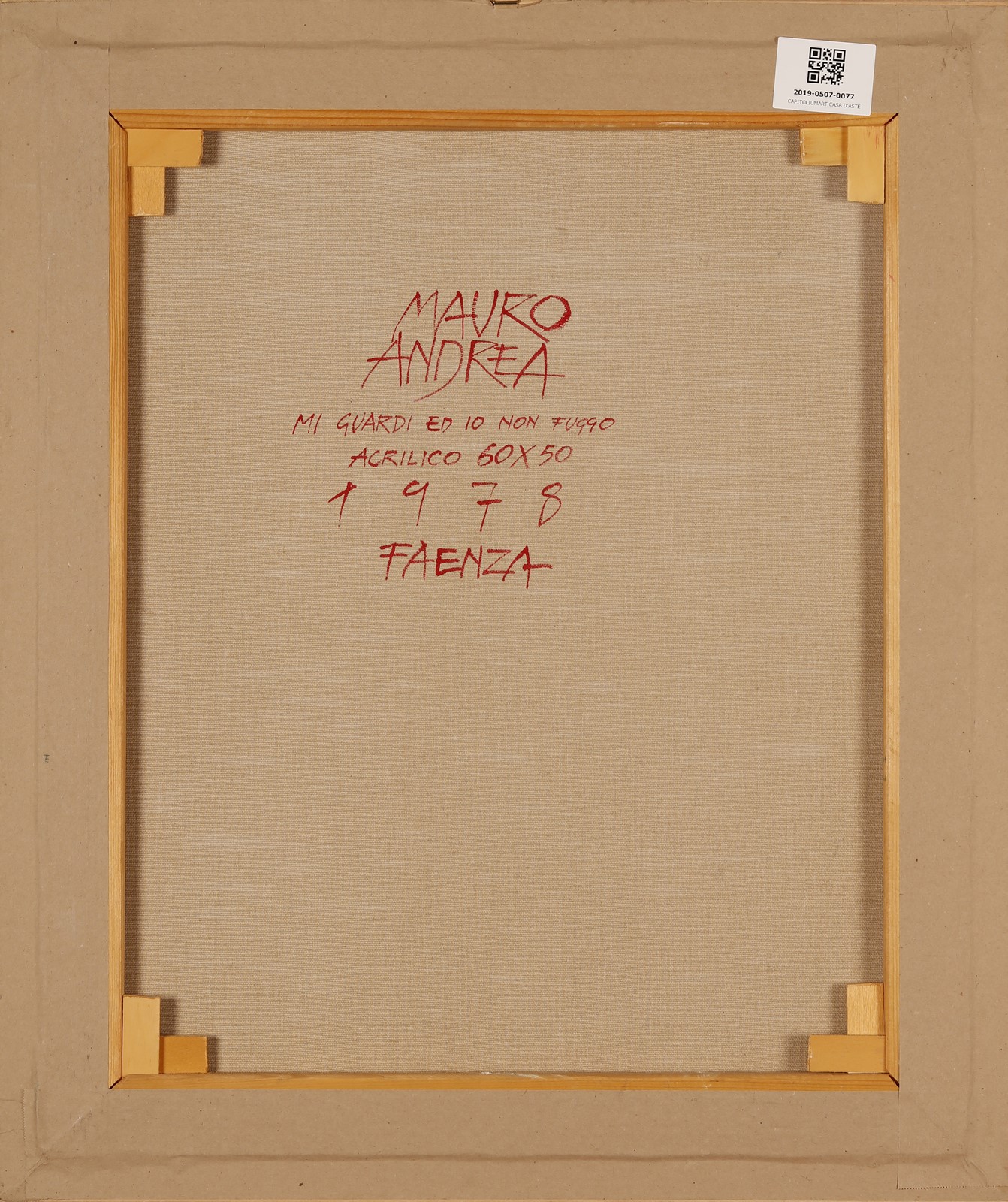 MAURO ANDREA (n. 1954) Untitled (Mi guardi e io non fuggo). 1978. Acrylic on canvas. Cm 50,00 x 60,00. Signature lower right. At the back ttle, signature and year. Artist's authenticity certificate on photo. Small defects. Cornice presente