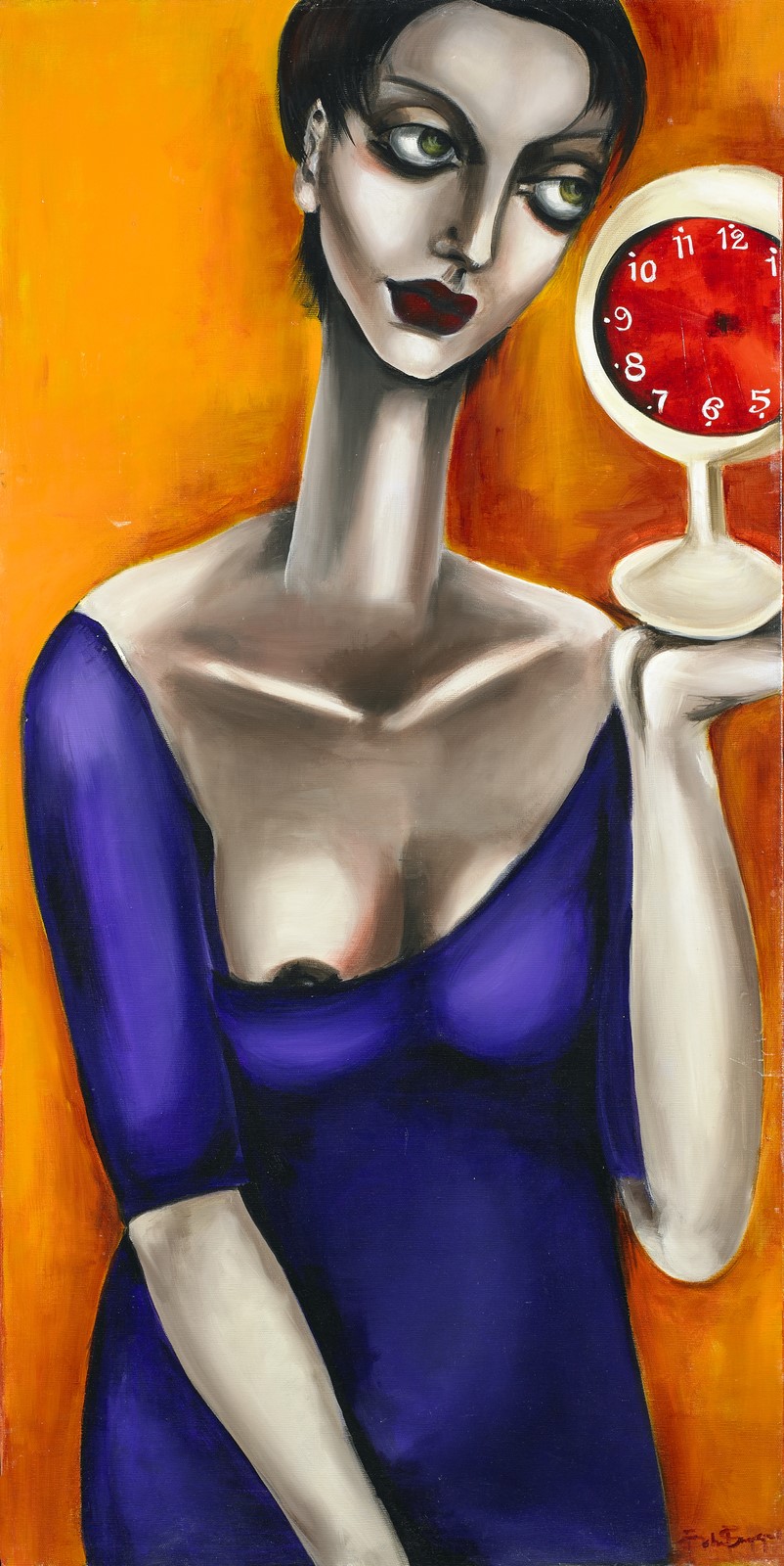 BARGAGNA BARBARA (n. 1971) Woman with the watch. Oil on canvas . Cm 50,00 x 100,00. Signature lower right. DL Arte, Milan authenticity certificate on photo.