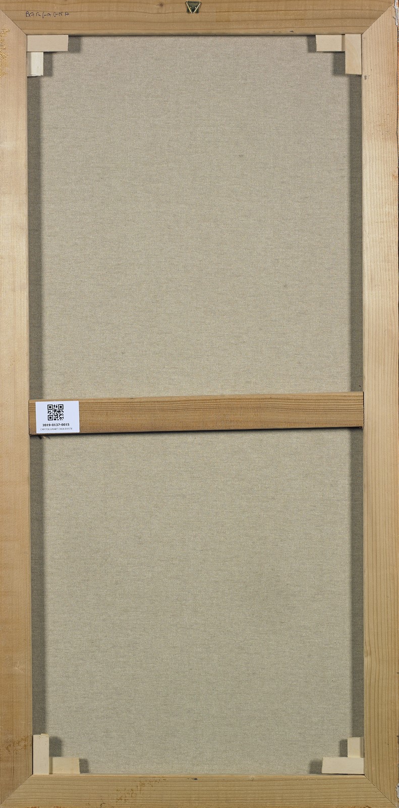 BARGAGNA BARBARA (n. 1971) Donna con l'orologio. Olio su tela . Cm 50,00 x 100,00. Firma in basso a destra. Certificato di garanzia DL Arte, Milano.