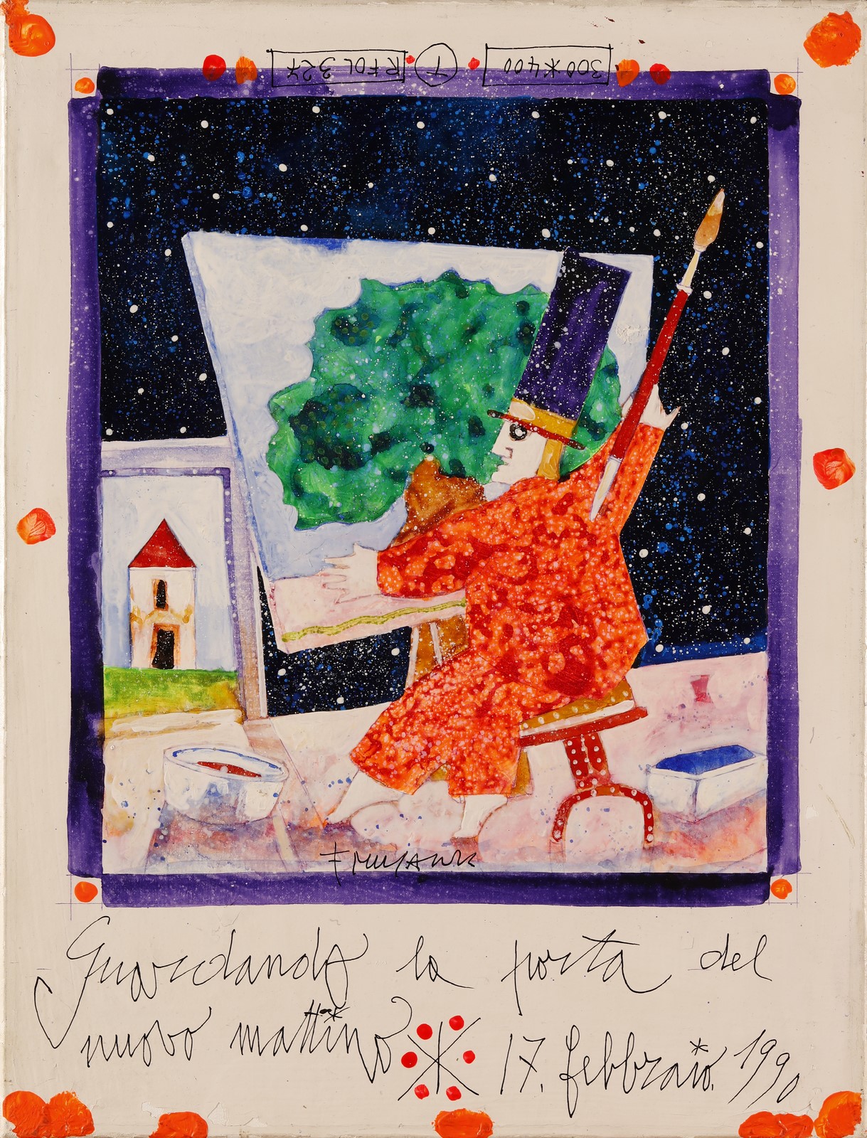 MUSANTE FRANCESCO (n. 1950) Untitled (Guardando la porta del nuovo mattino). 1990. Oil on canvas . Cm 30,00 x 40,00. Title, signature and year lower. Authenticity certificate on photo. Small defects.