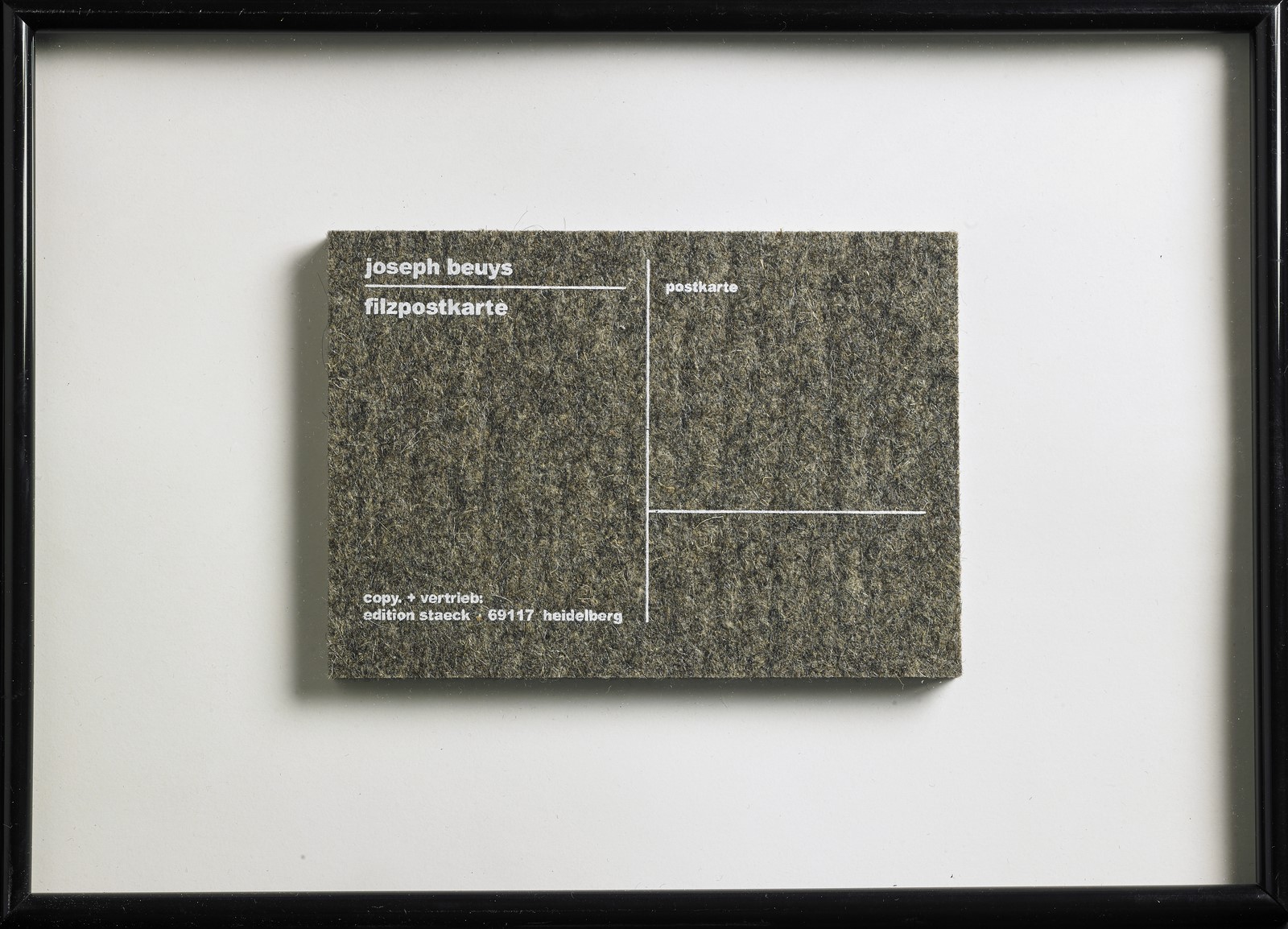 BEUYS JOSEPH (1921 - 1986) Postkarte. Feltro. Cm 15,00 x 10,50 x 1,00. Edizioni Staeck, Heidelberg1985. Pubblicazione: Catalogo Schellmann 1997 (8a ed.) n°539, p. 396. Cornice presente