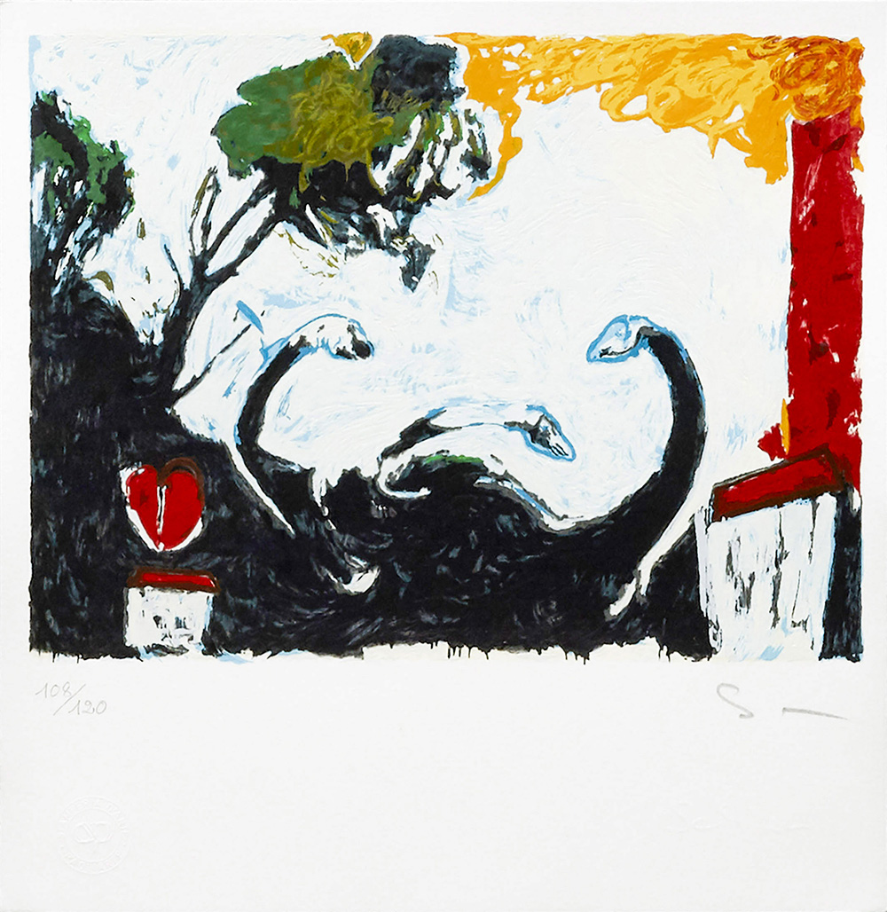 Mario Schifano 1934 - 1998 Senza titolo Litografia H21.5 x L21 cm (8.46 x 8.27 in. ) Firma in basso a destra Ed. 108/120 in basso a sinistra Timbro della Stamperia Paoliarte in basso a sinistra Provenienza Collezione privata, Milano L'opera è incorniciata.