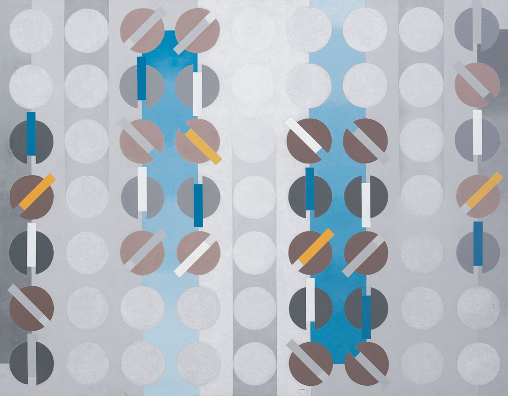CARLO NANGERONI New York (U.S.A.) 24/06/1922 Interferenze dinamiche, 2004 acrilici su tela cm. 101x129, firma e anno al retro, pubblicato sul catalogo della mostra "Carlo Nangeroni varianti, verifiche, anzi sorprese" Edizioni Riza, tenutasi presso la Galleria d'Arte Soave dal 29 ottobre al 27 novembre 2005, pagina 33, opera senza cornice.