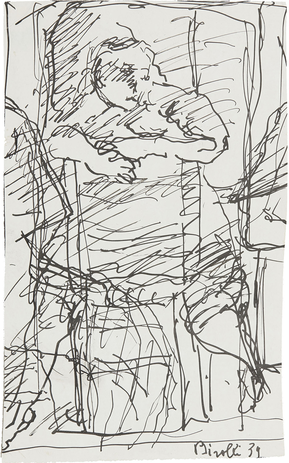 Renato Birolli 1905 - 1959 Senza titolo, 1939 Inchiostro di china su carta H16.5 x L10 cm (6.50 x 3.94 in. ) Firma ed anno in basso a destra Provenienza Collezione privata, Milano