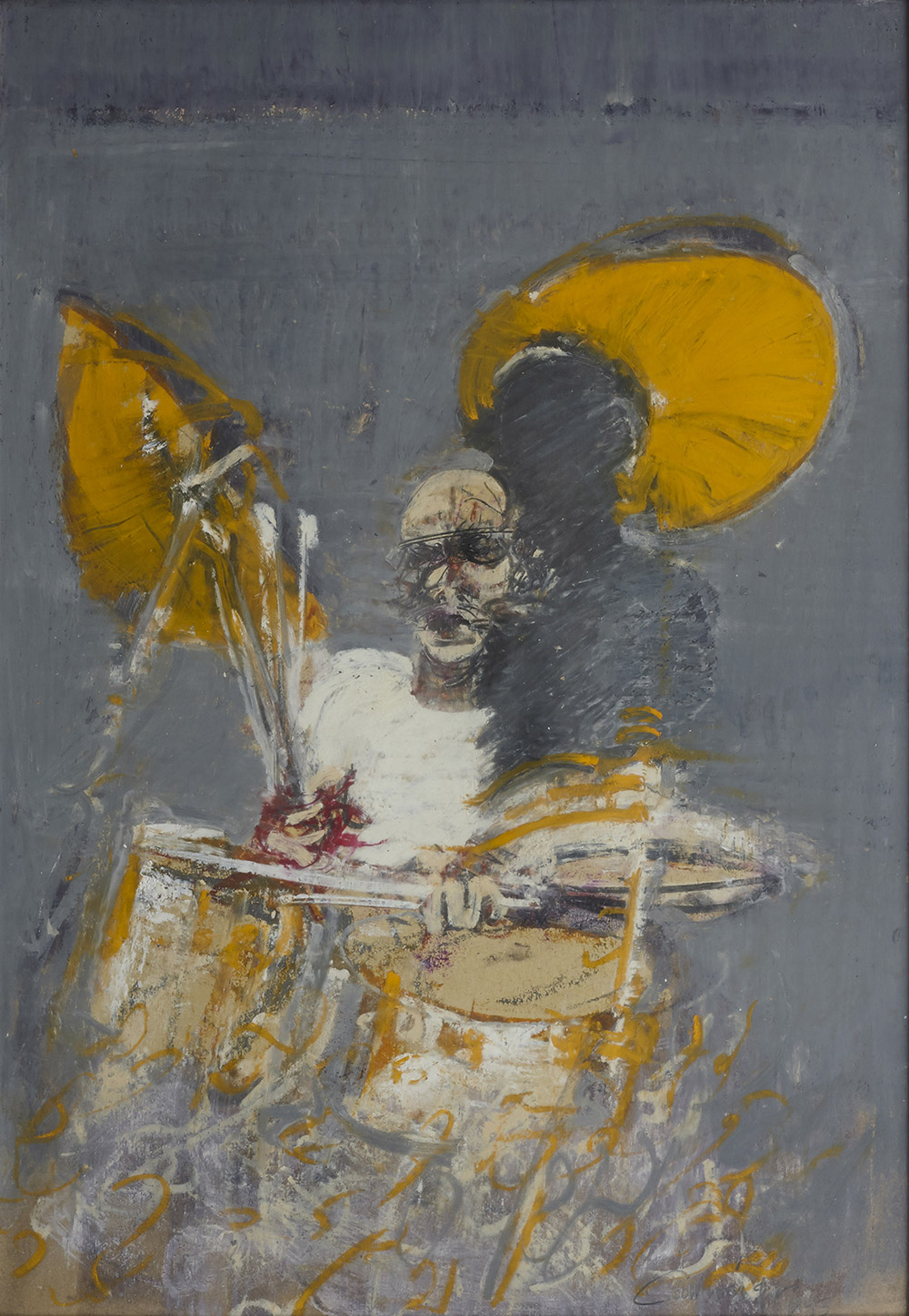 Giancarlo Cazzaniga 1930 - 2013 Senza titolo, 1993 Tecnica mista su carta intelata H50 x L35 cm (19.69 x 13.78 in. ) Firma e data in basso a destra Etichetta della Galleria d'Arte Palmieri, Busto Arsizio sul retro Provenienza Collezione privata, Milano Certificato L'opera è accompagnata da certificato di autenticità dell'artista su fotografia. L'opera è incorniciata.