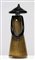 VETRERIA CENEDESE Statuetta. Vetro di Murano. Cm 5,50 x 16,50 x 5,50. Figura orientale in vetro trasparente con sommersione in foglia oro. Applicazioni in vetro nero. Anni ‘80