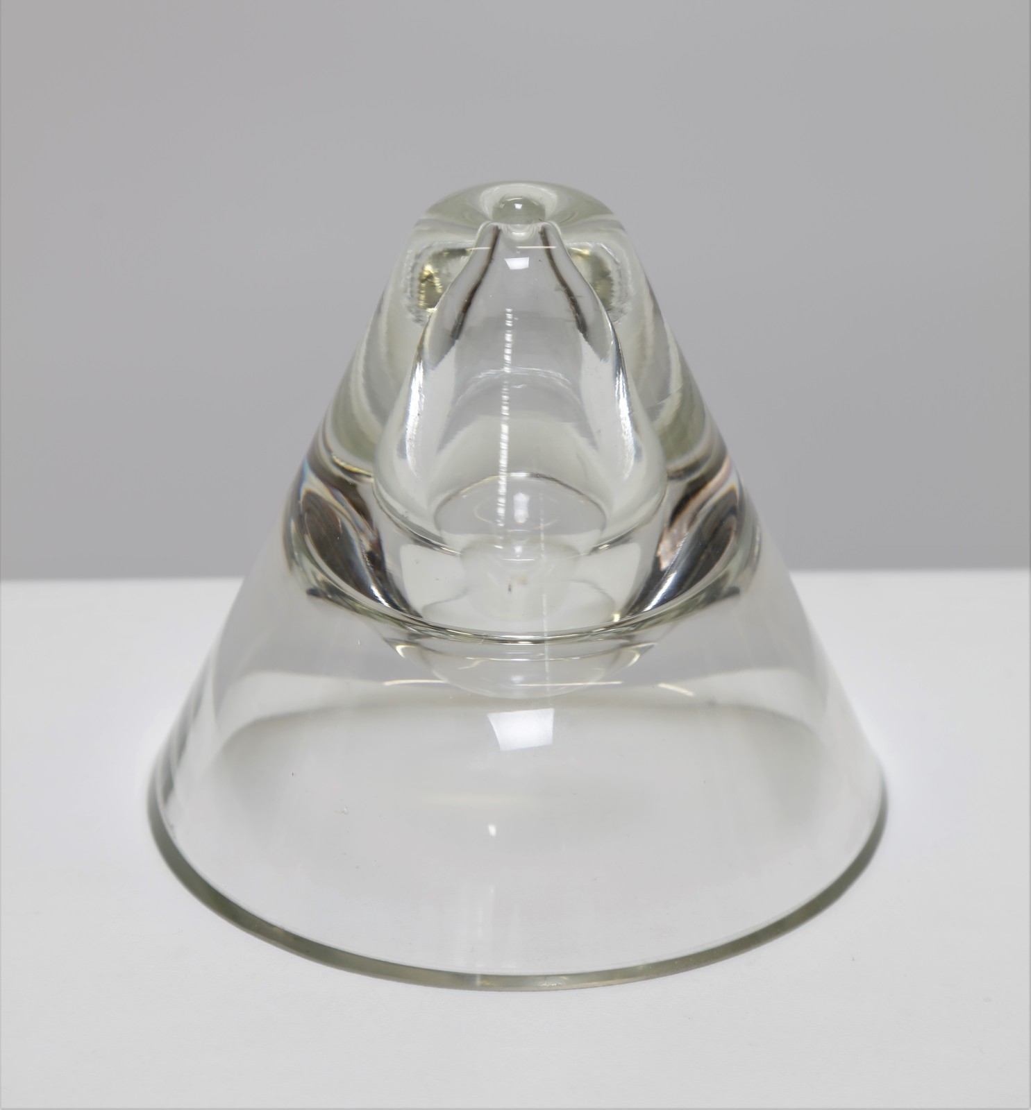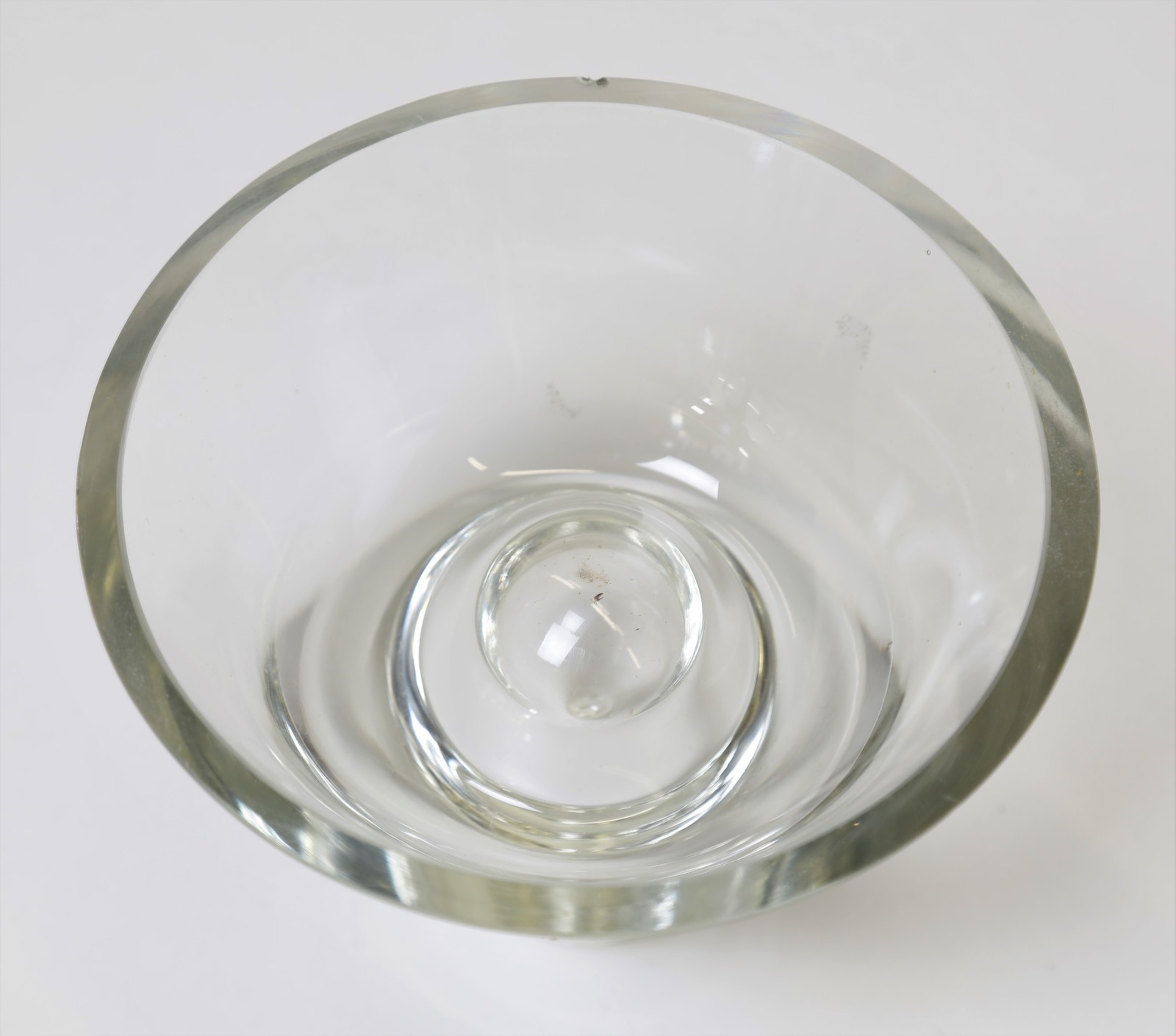 BARBINI MURANO Attrib Piccolo vaso. Vetro di Murano. Cm 14,50 x 13,50. Piccolo vaso in vetro trasparente a sezione conica, anni ‘70.