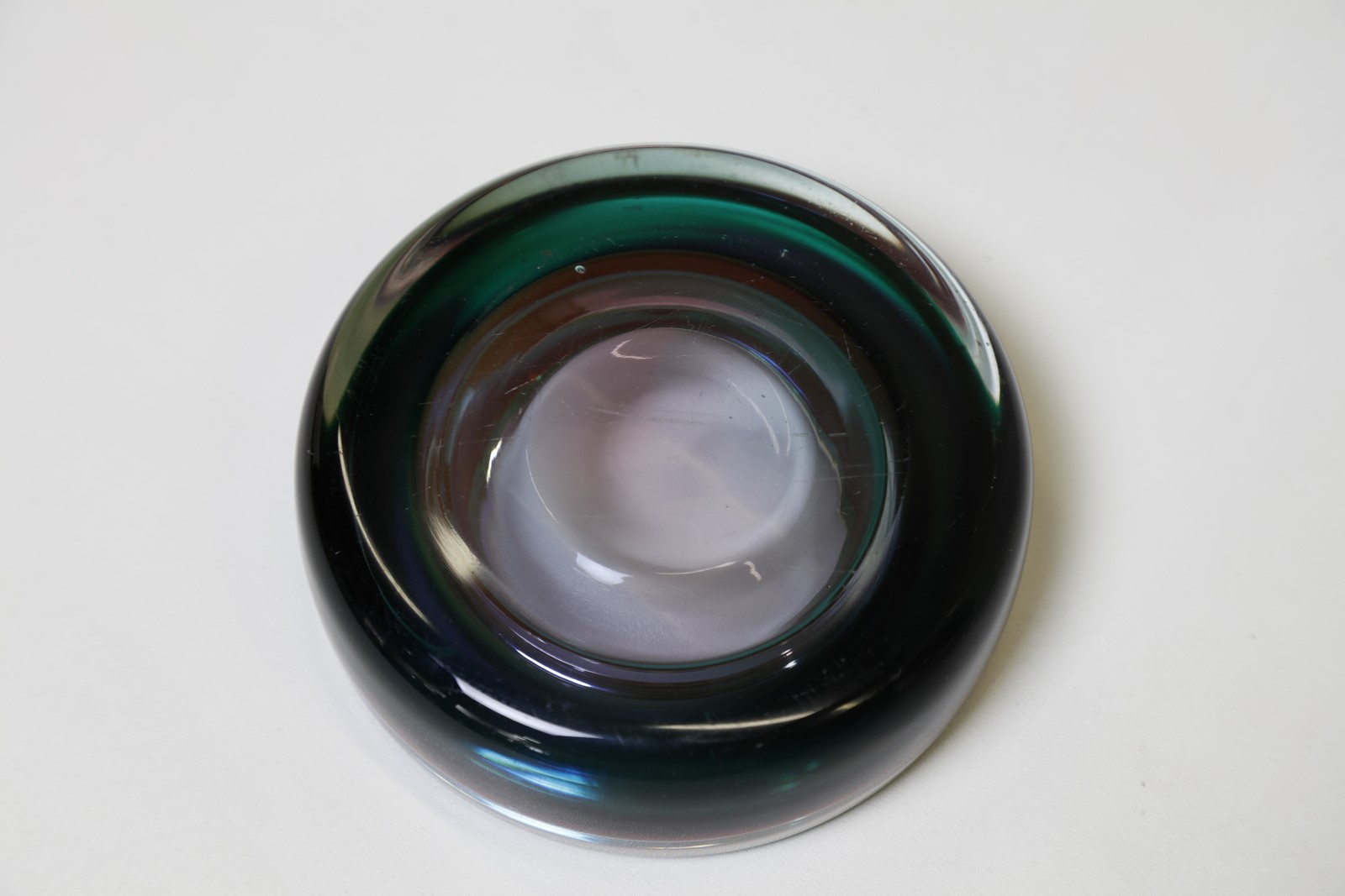 MANIFATTURA MURANO Bowl. Murano glass. Cm 12,50 x 4,00 x 12,50. Bowl with green and brown bands, 60s.
